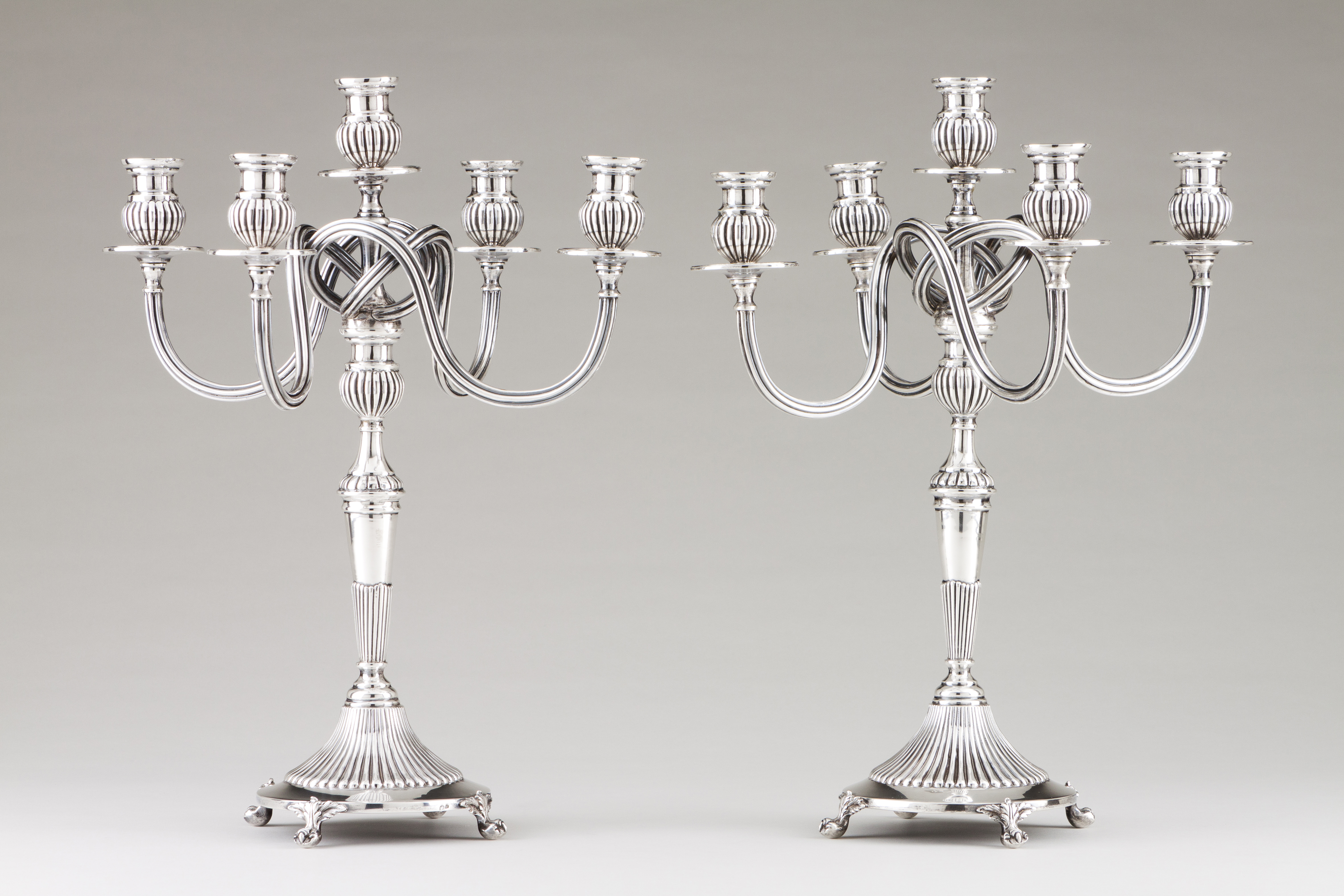 A pair of five branch candelabra