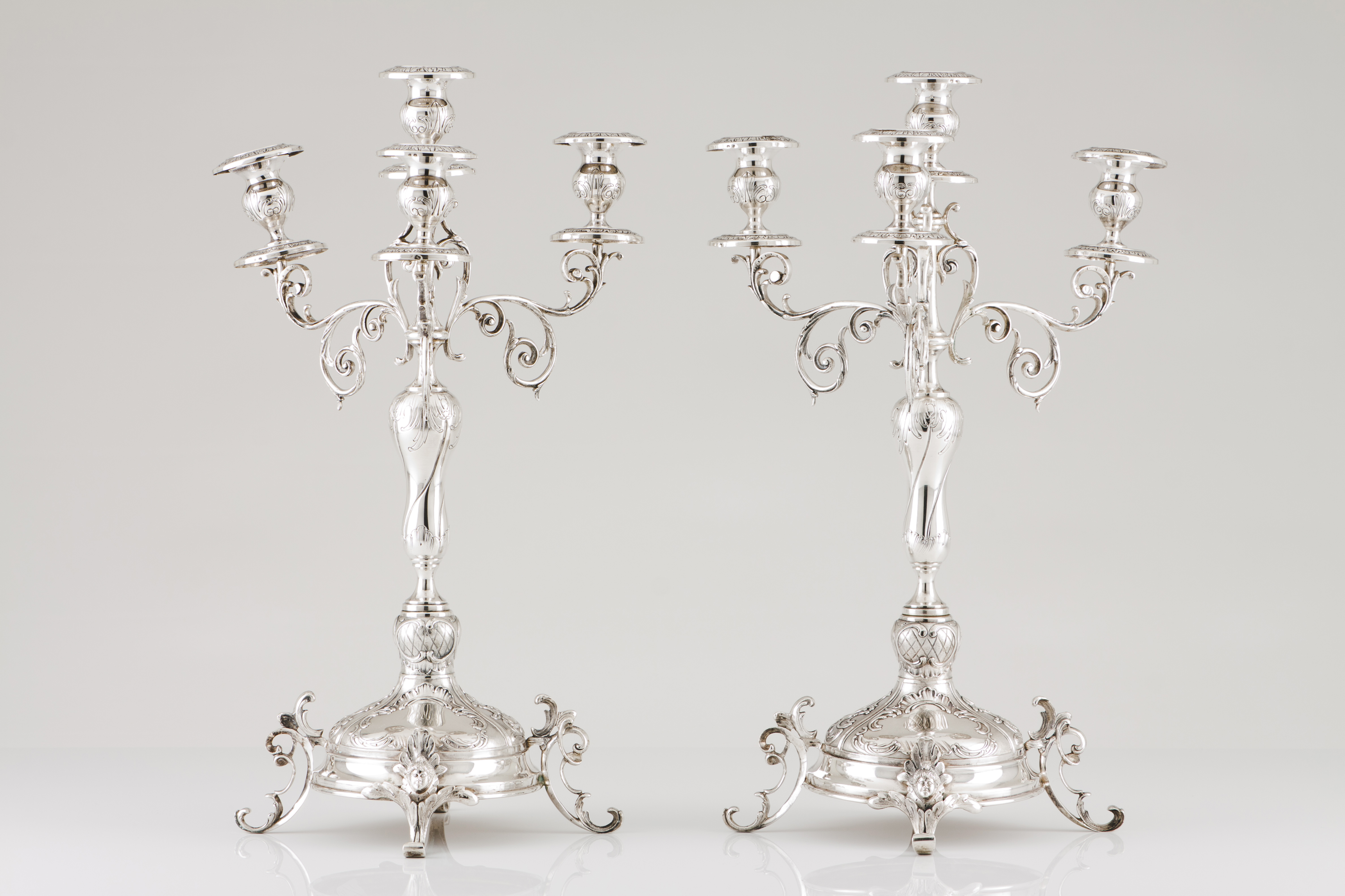 A pair of four branch candelabra
