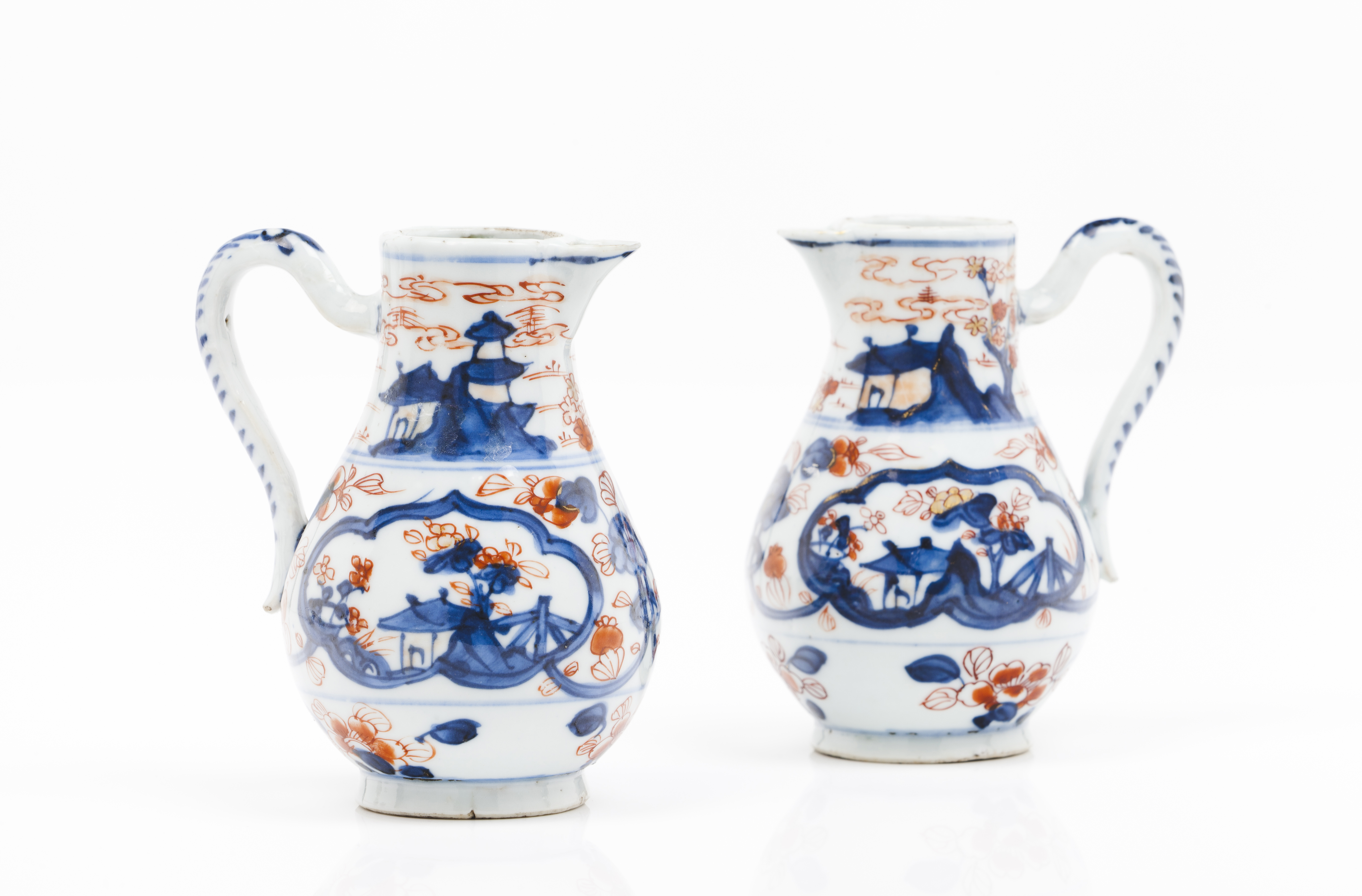 Blue underglaze, iron oxide and gilt decoration with flowers and landscape cartouches