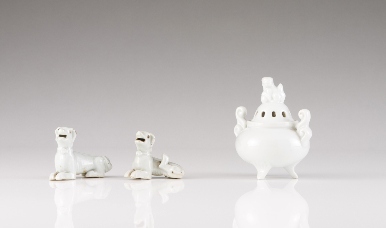 Miniature sculptures representing dogs, white monochrome decoration