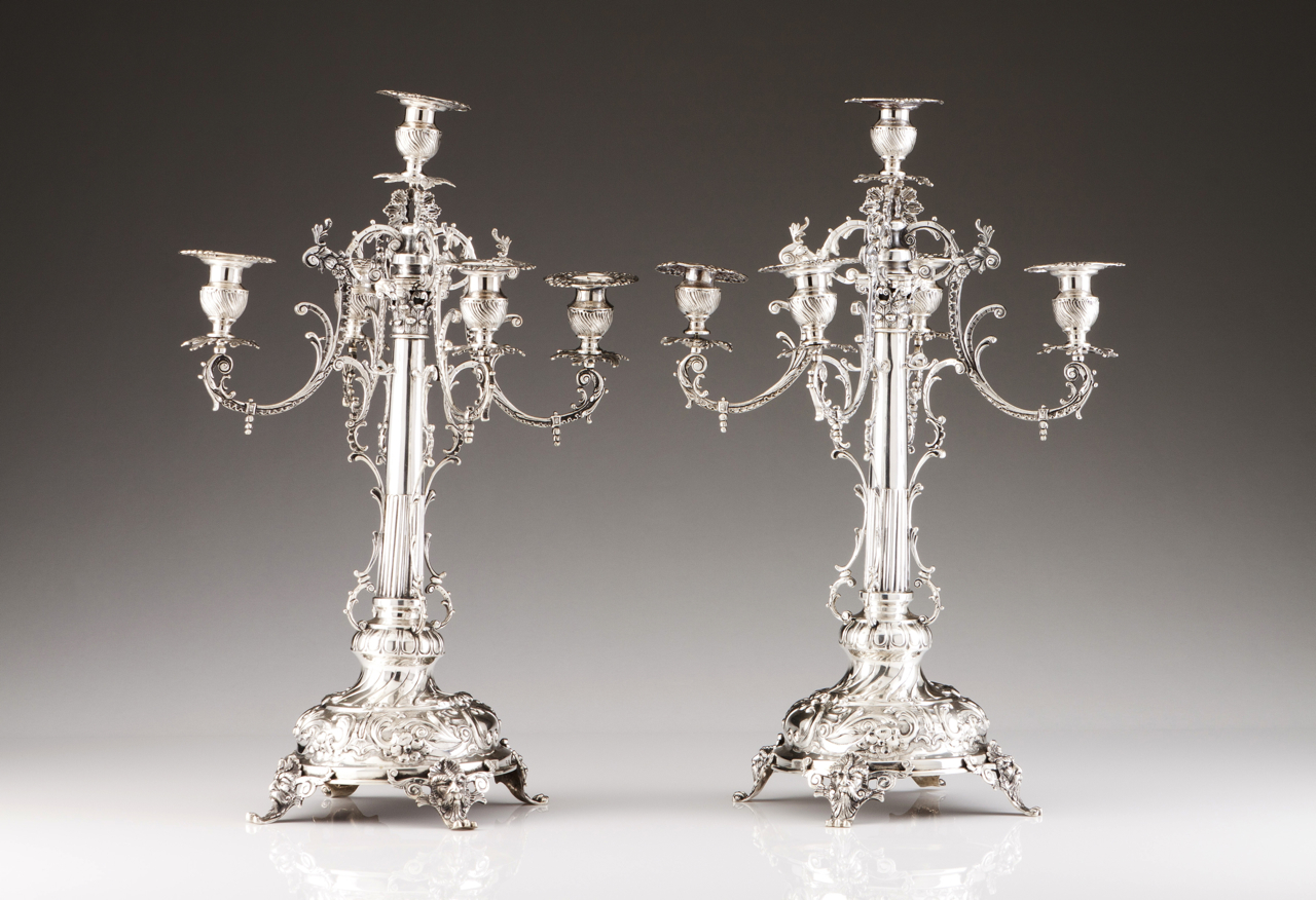 A pair of late 19th, early 20th century Portuguese silver candelabra