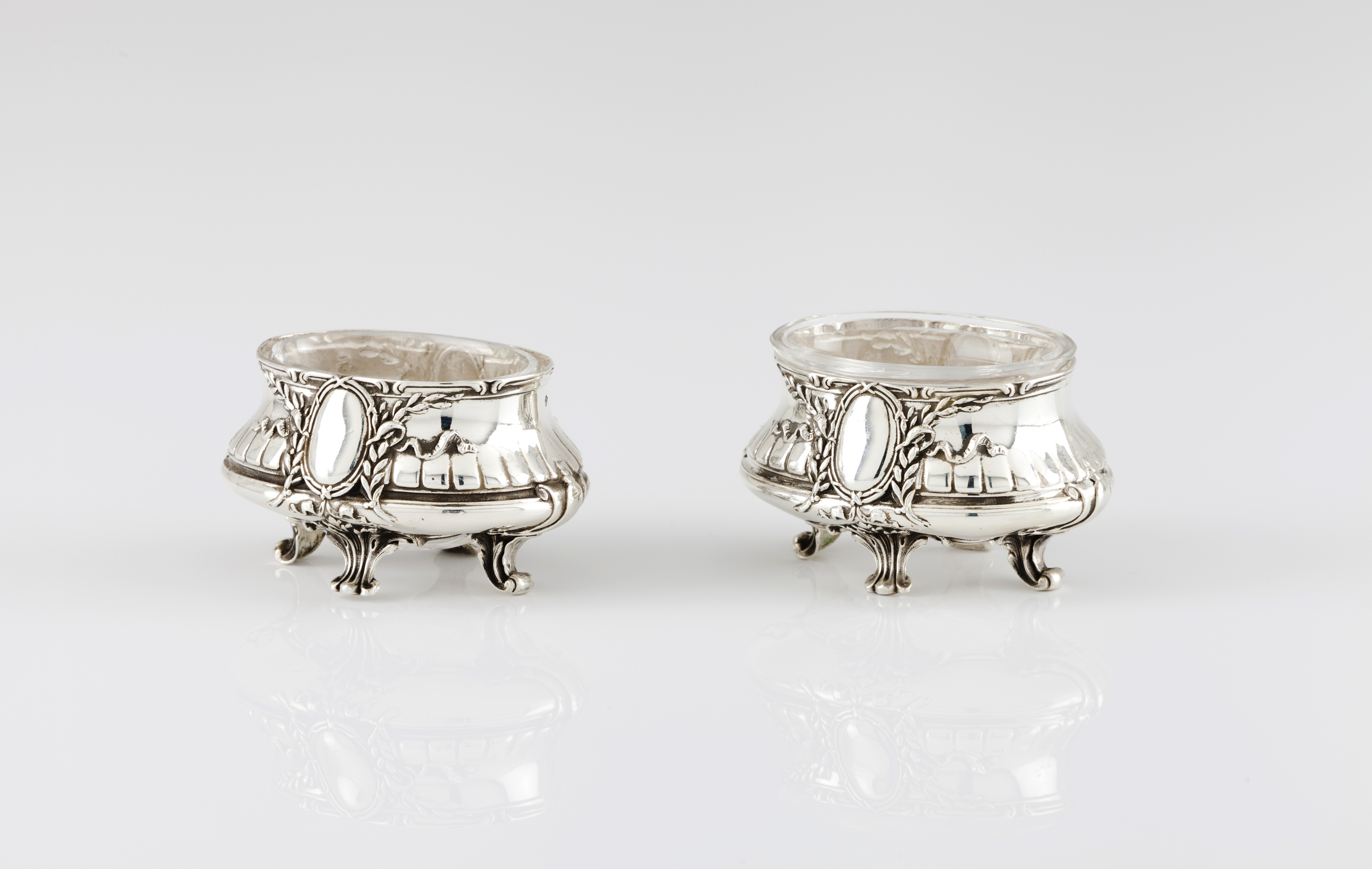 Baluster shaped of neoclassical decoration with pilasters, flower garlands, ribbons, laurels and acanthus with blank cartouches on foliage feet