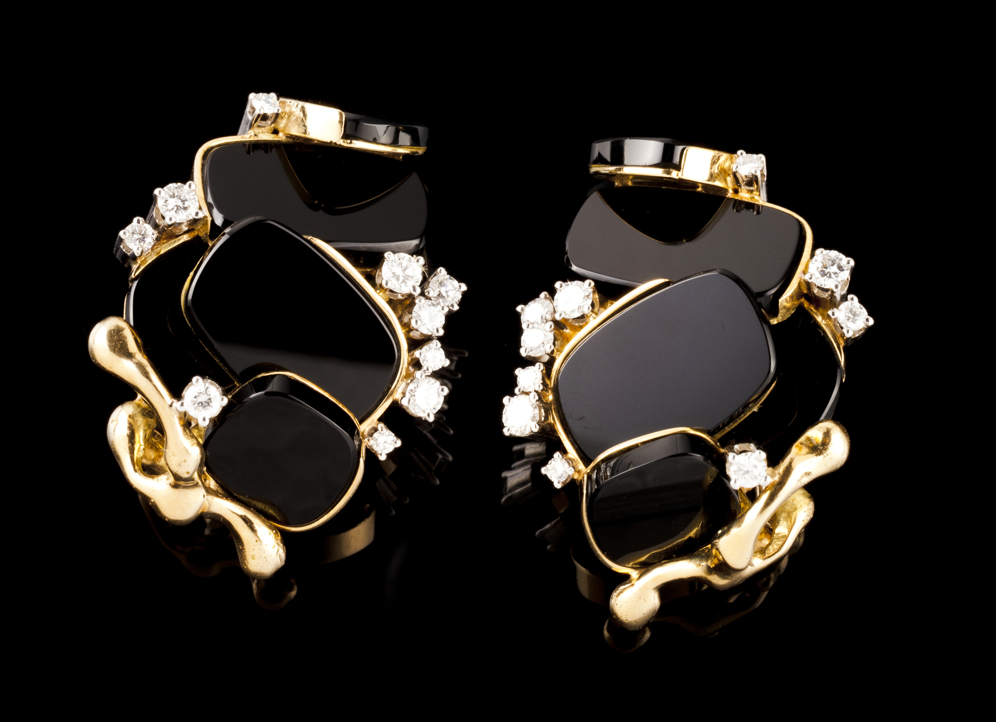 18kt gold set with onyx plaques and 20 brilliant cut diamonds (ca. 0,90ct)