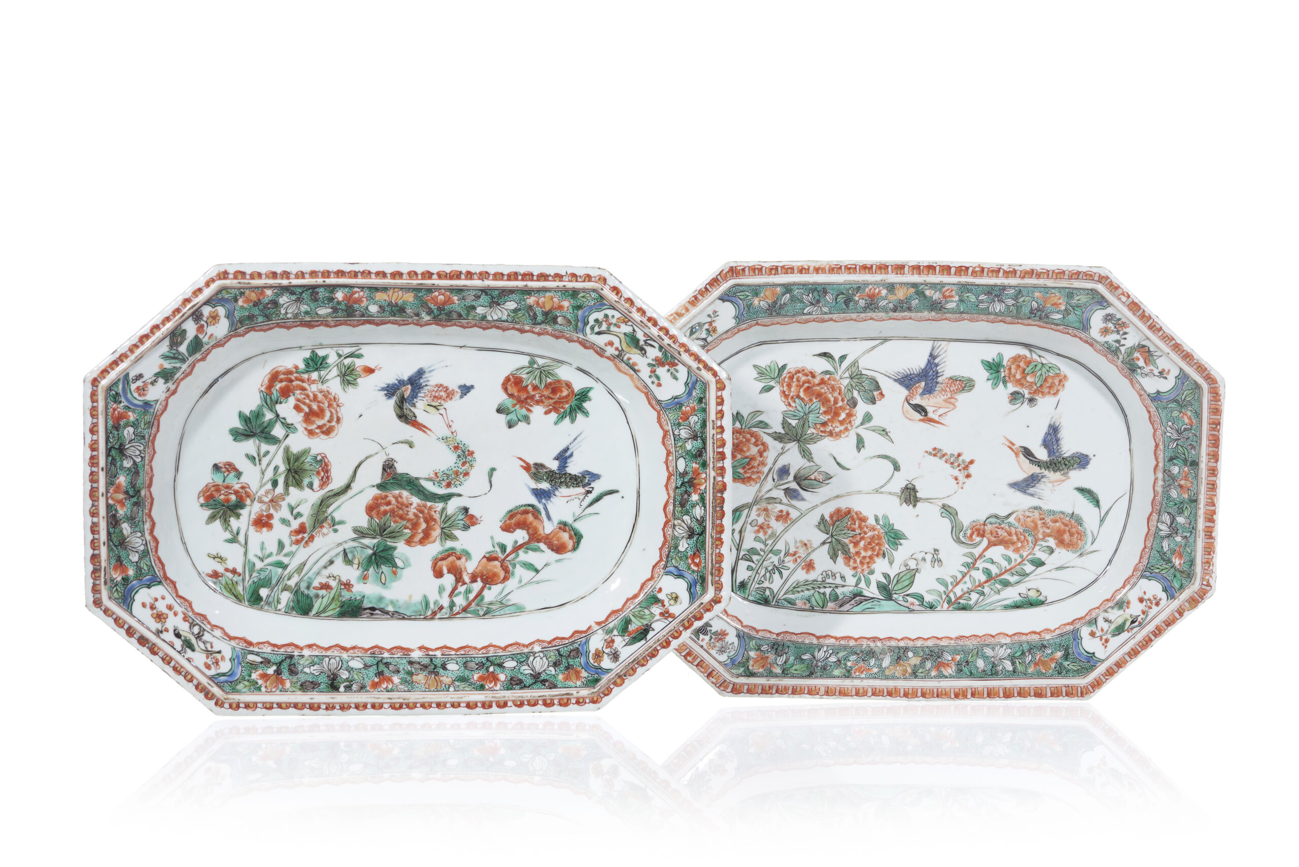 With polychrome Famille Verte enamel decoration depicting landscape with flowers and birds