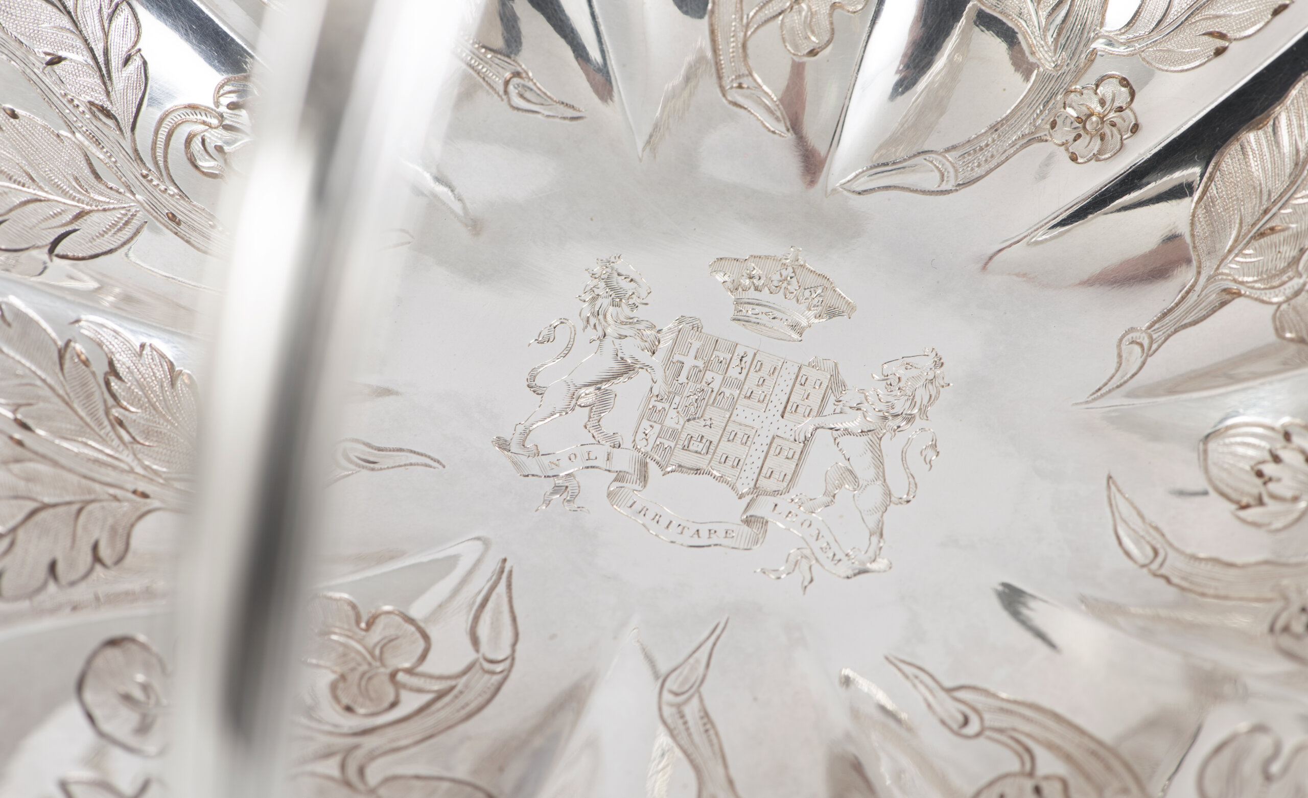 Centre engraved with the arms of the Walsh family with the motto NOLI IRRITARE LEONEM