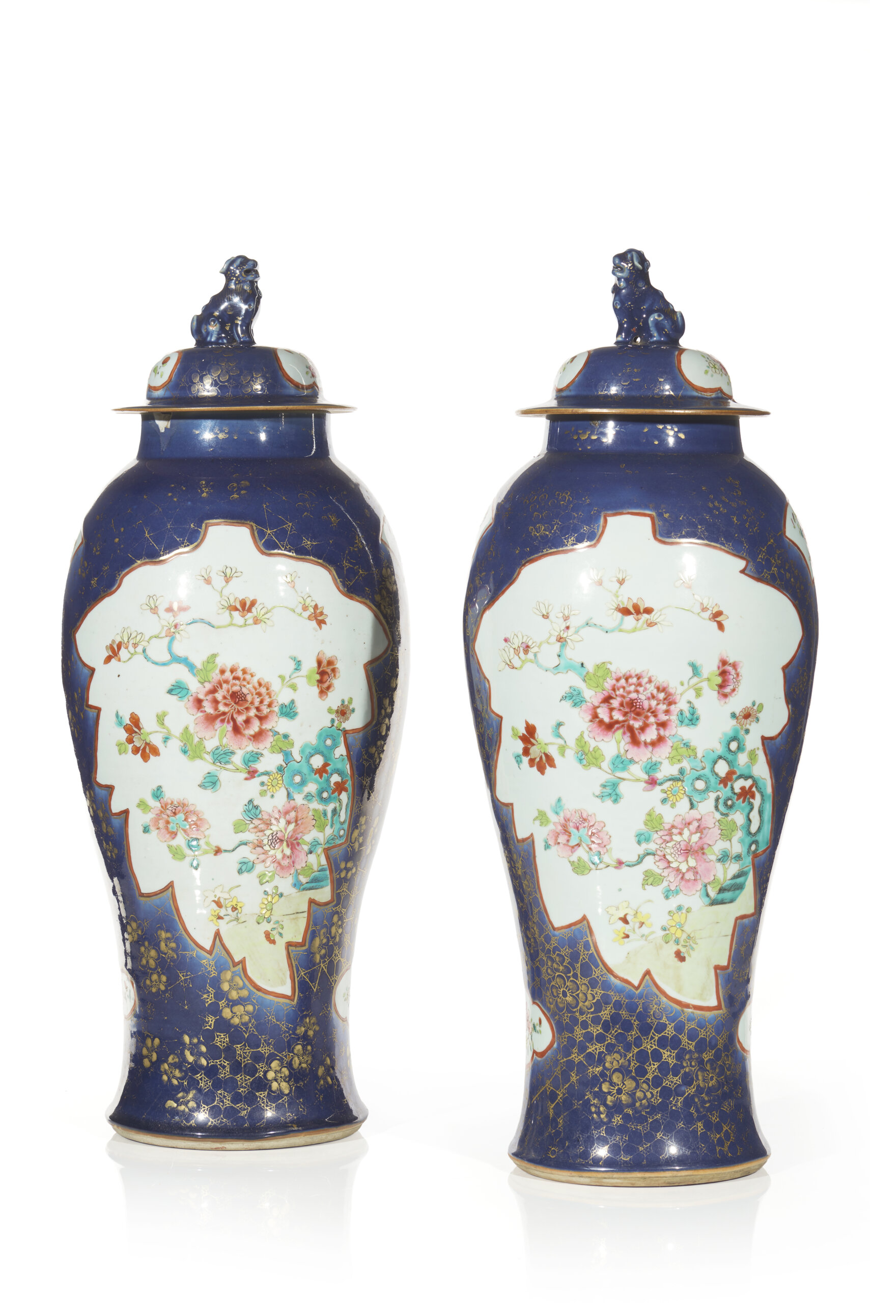 A pair of powder-blue Chinese export porcelain covered jars