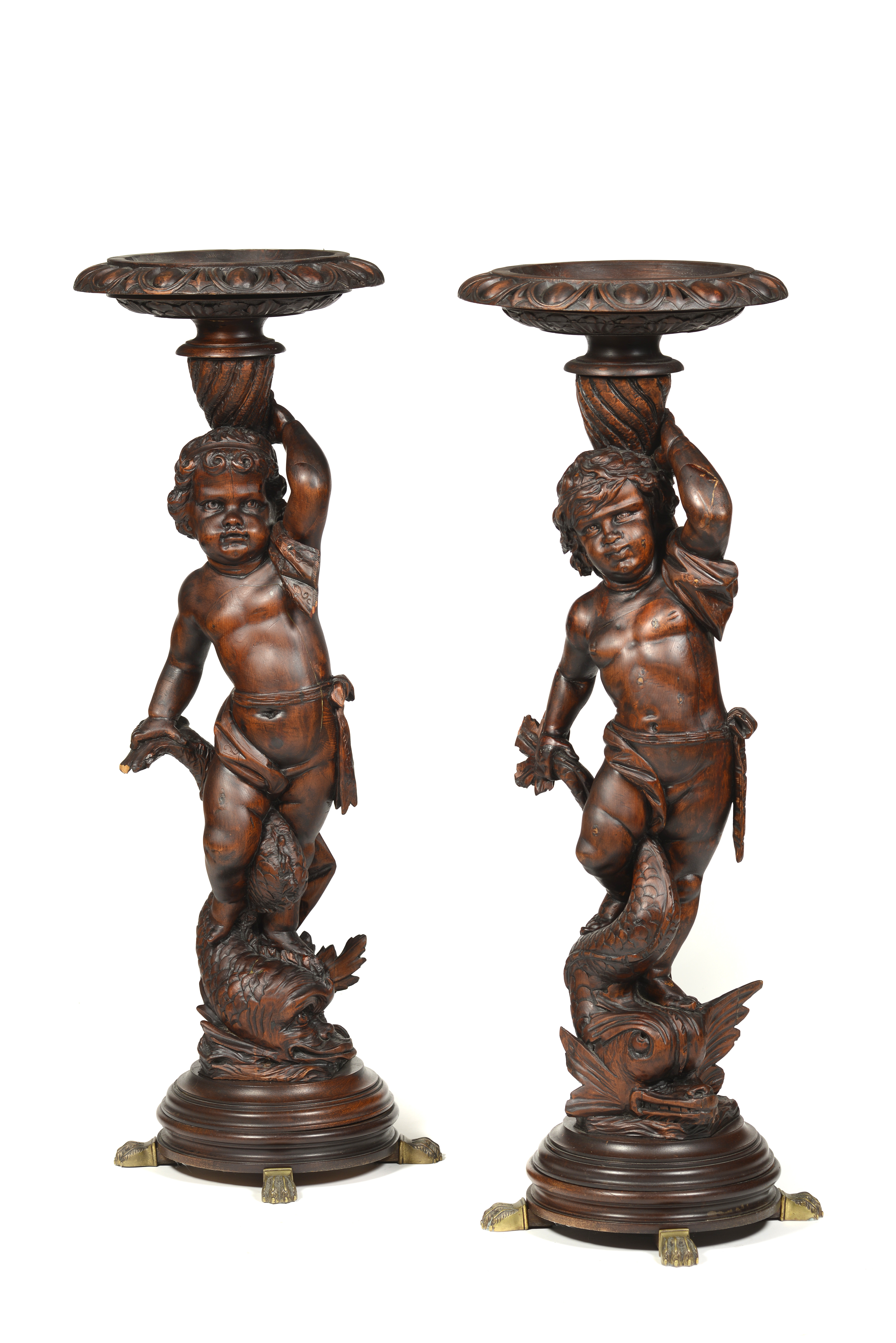 Each shaft with dolphin riding putto holding cornucopia