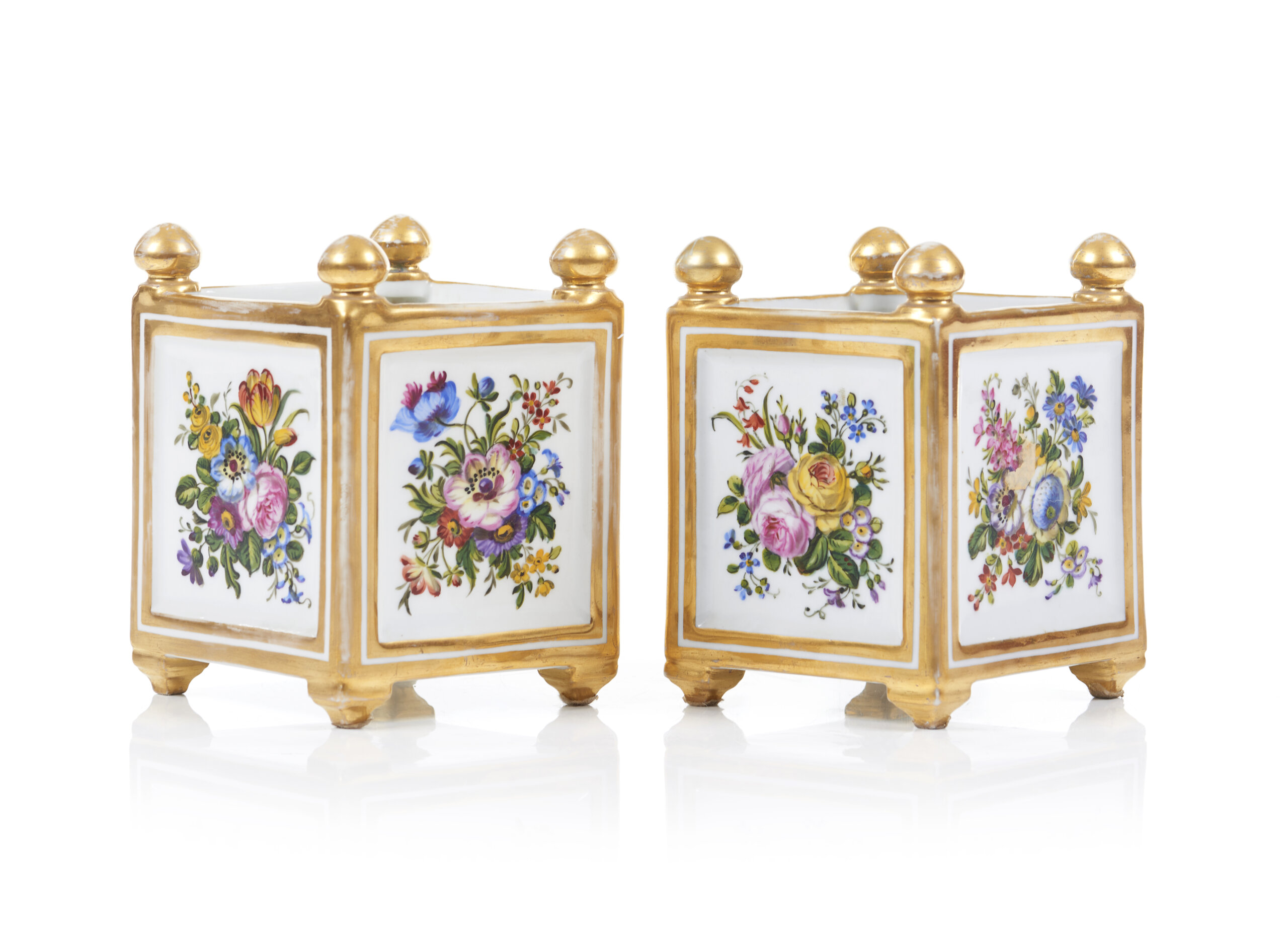 A pair of Samson Paris porcelain caisses à fleurs carrées (square flower tubs), à la Sèvres