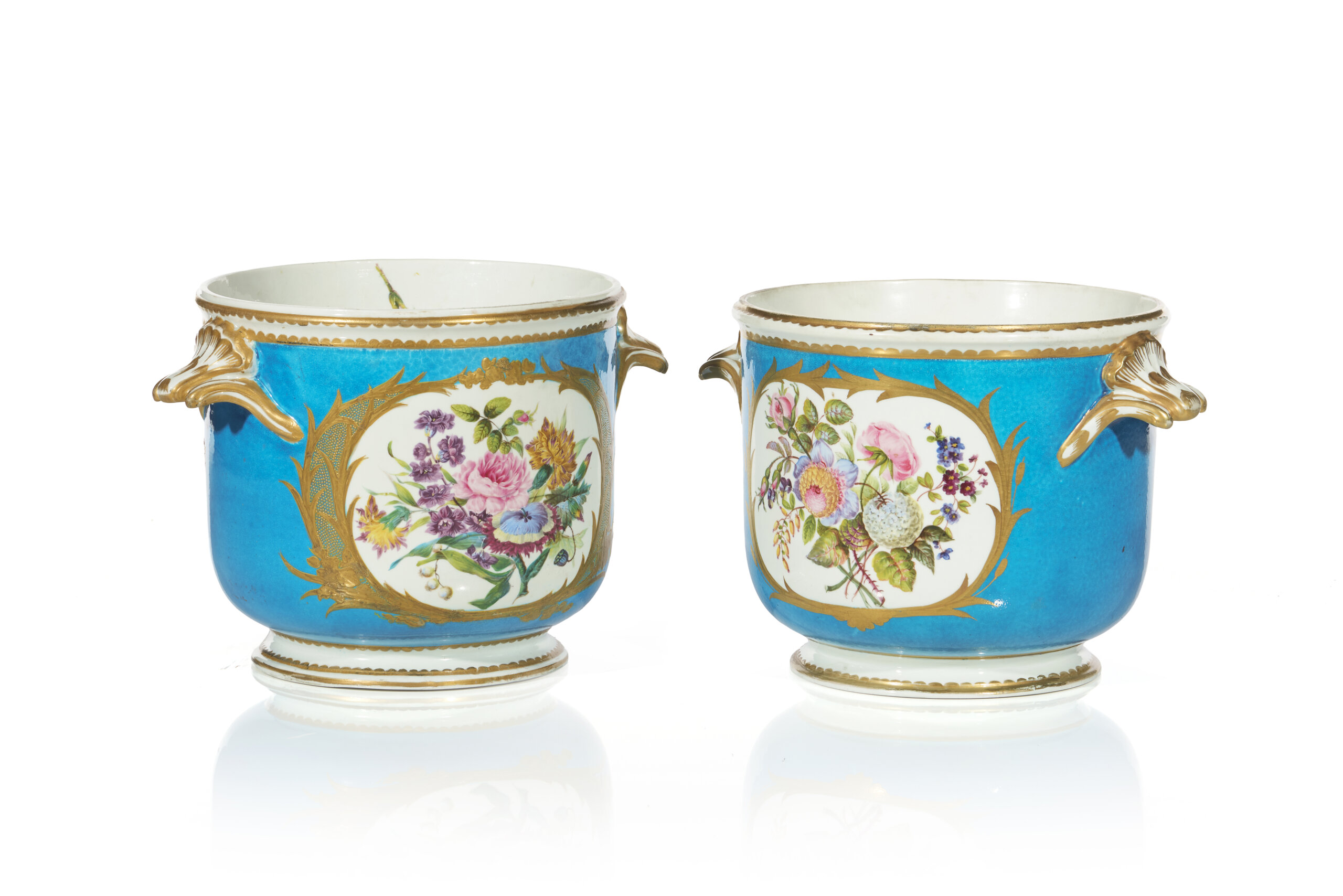 A pair of Sèvres-style porcelain cachepots
