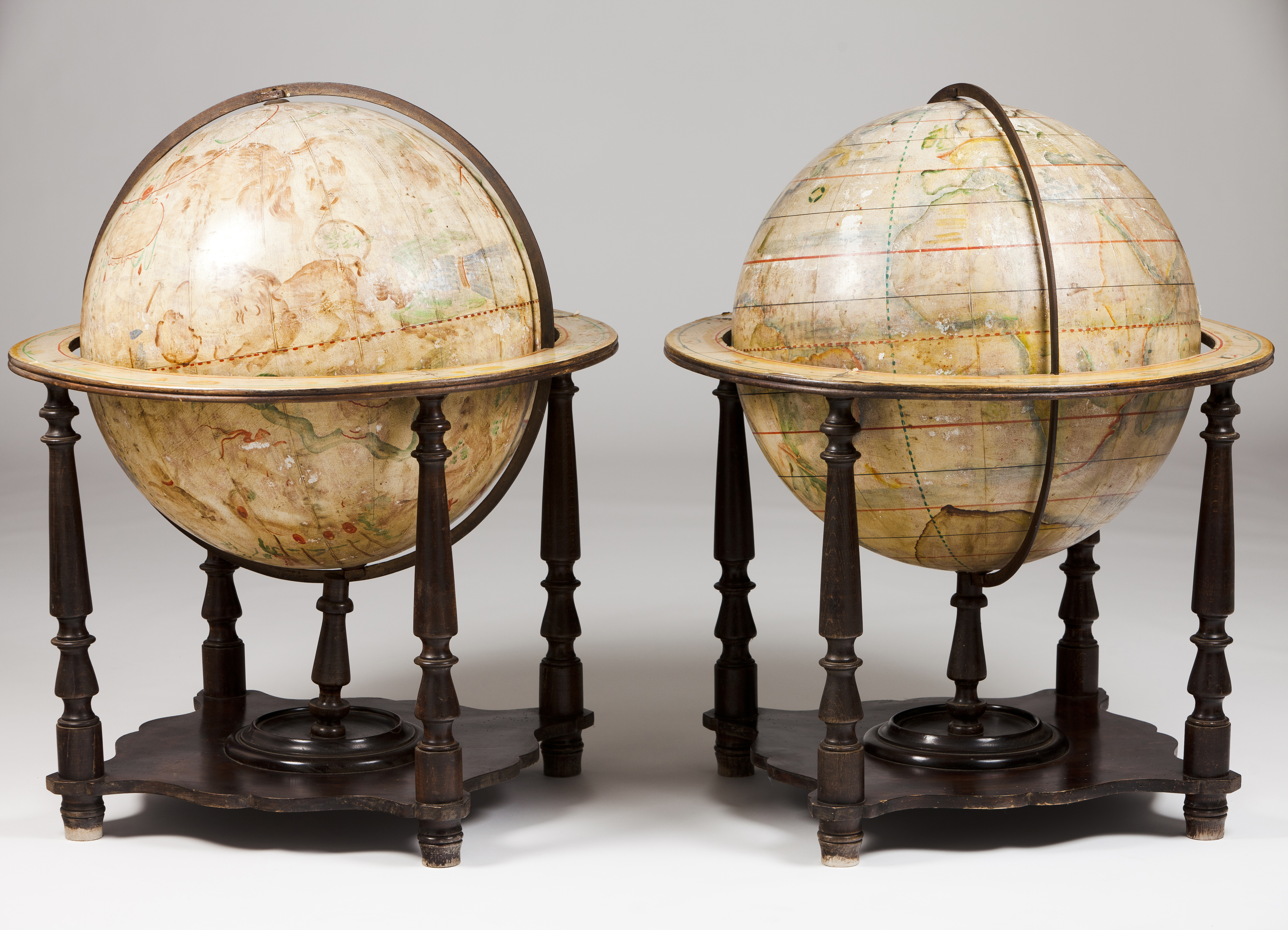 A pair of terrestrial and celestial globes