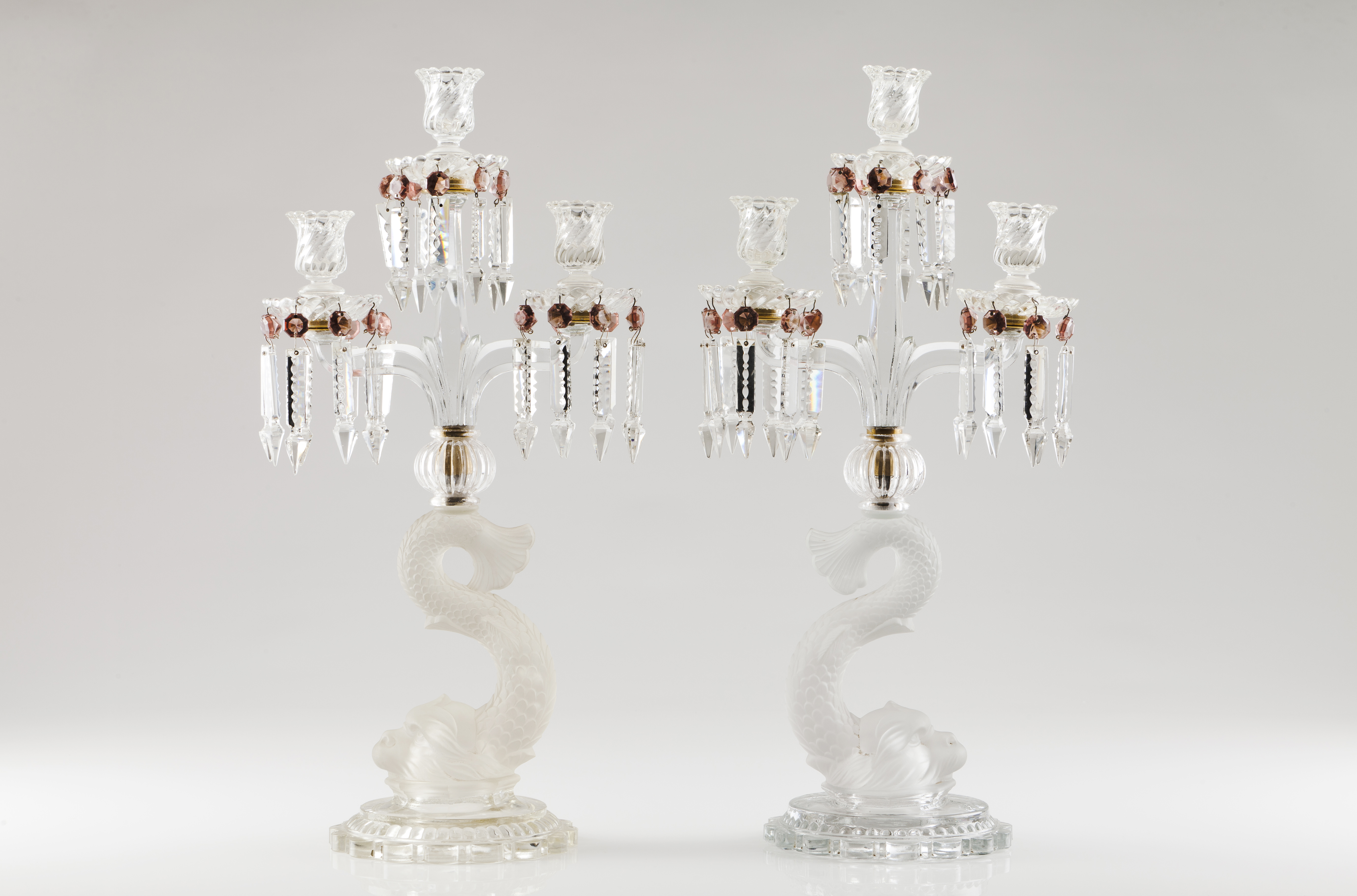 A pair of three branch candelabra