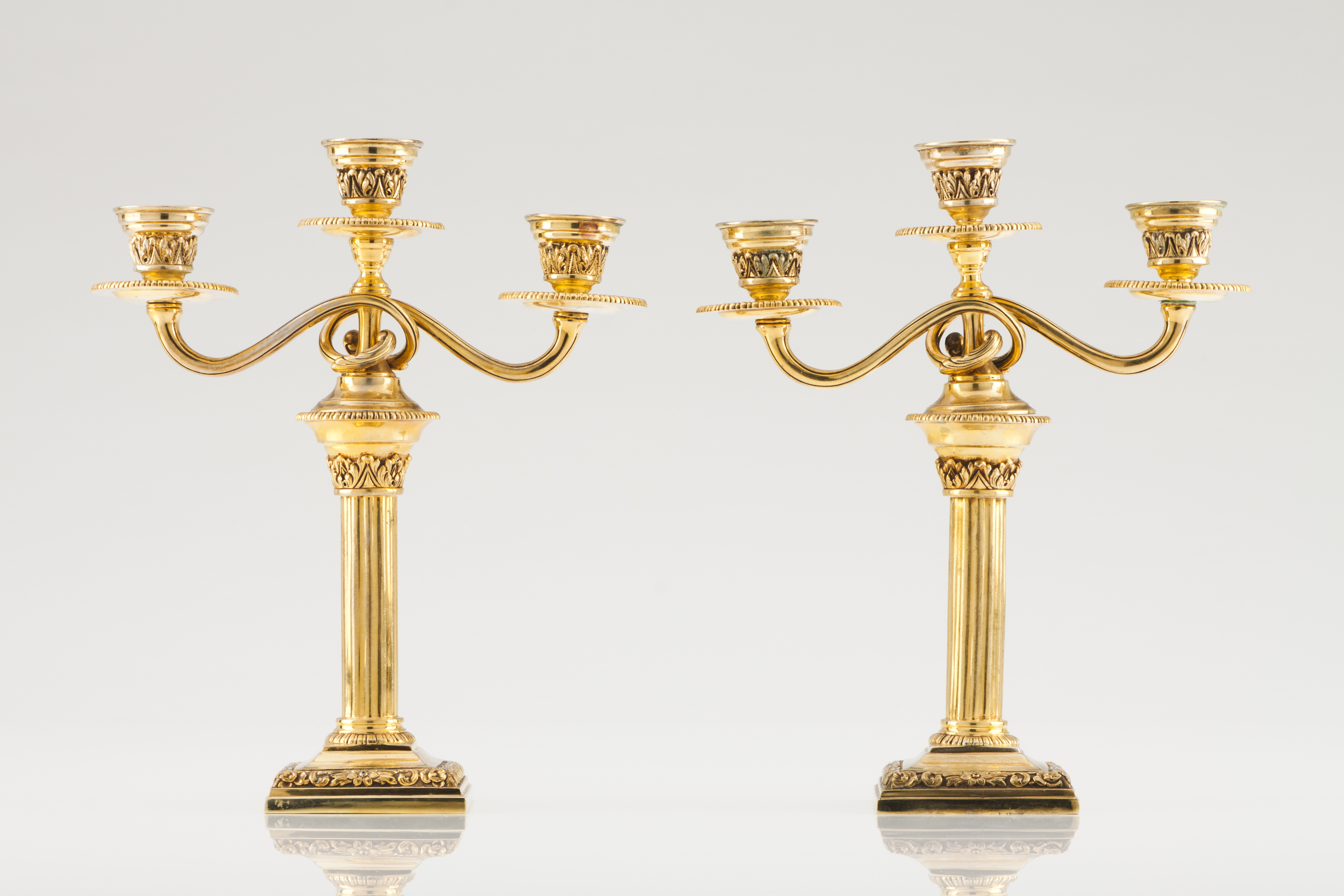 A pair of three branch candelabra