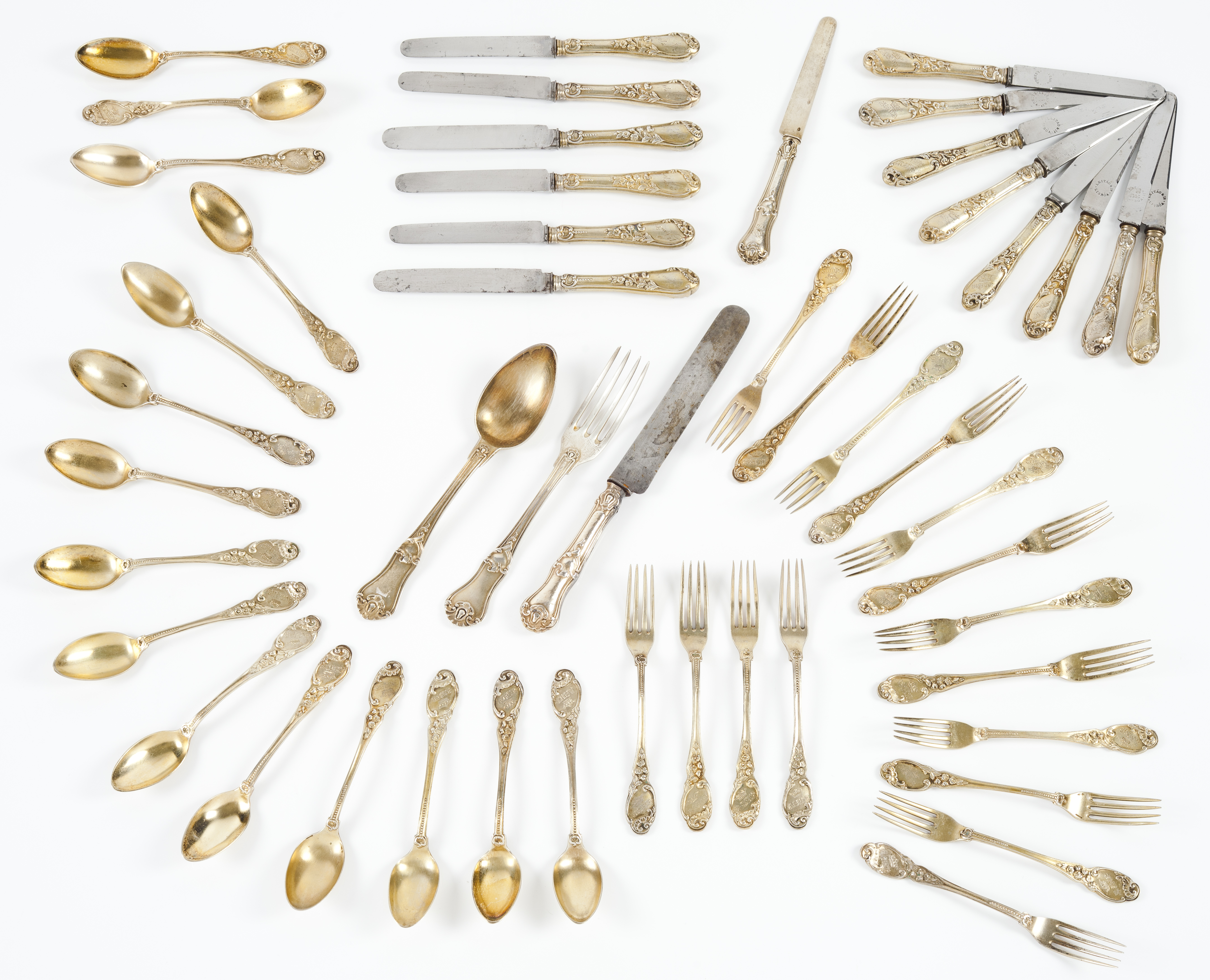 16 dessert spoons, forks and knives (blades engraved Leitão & Irmão)