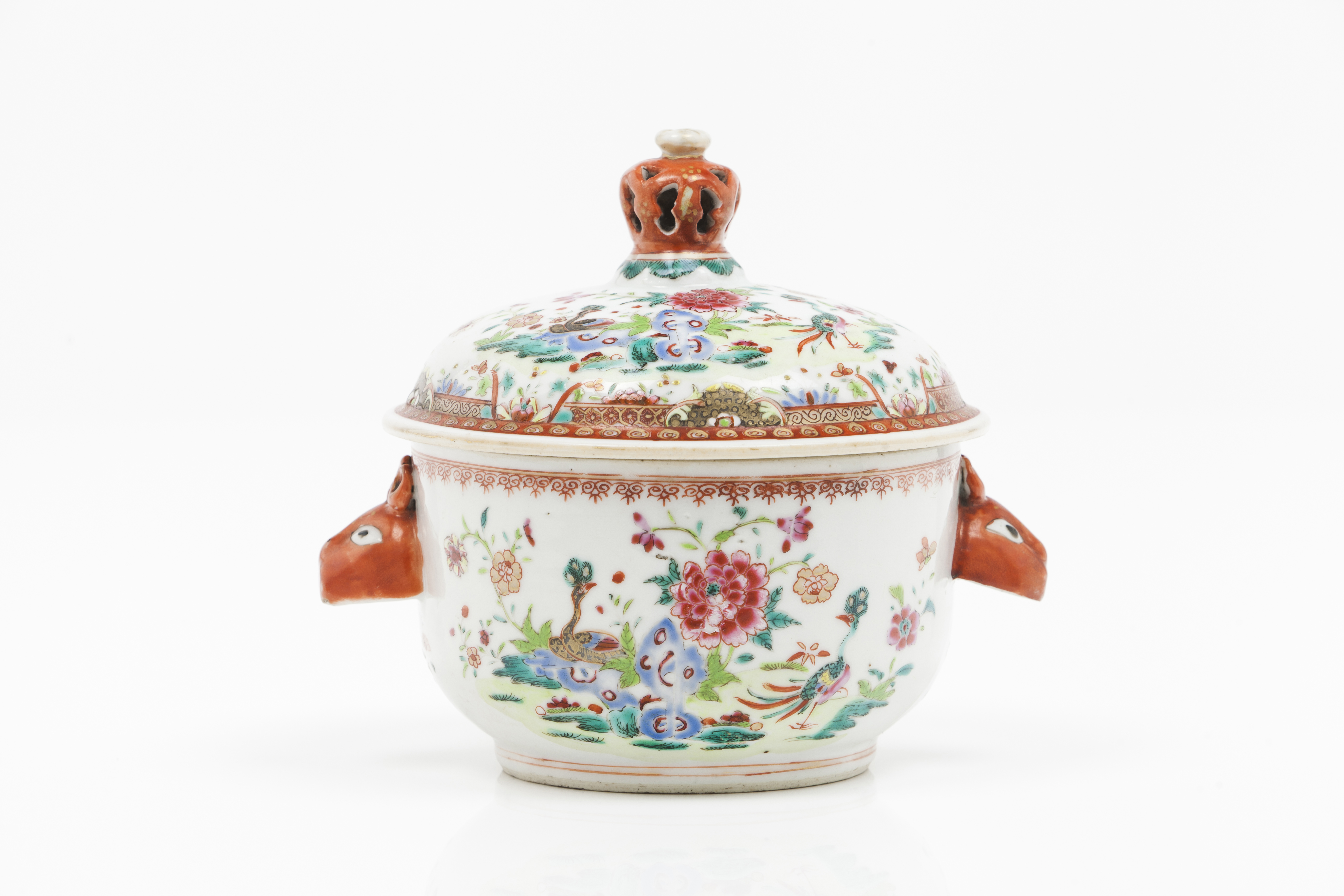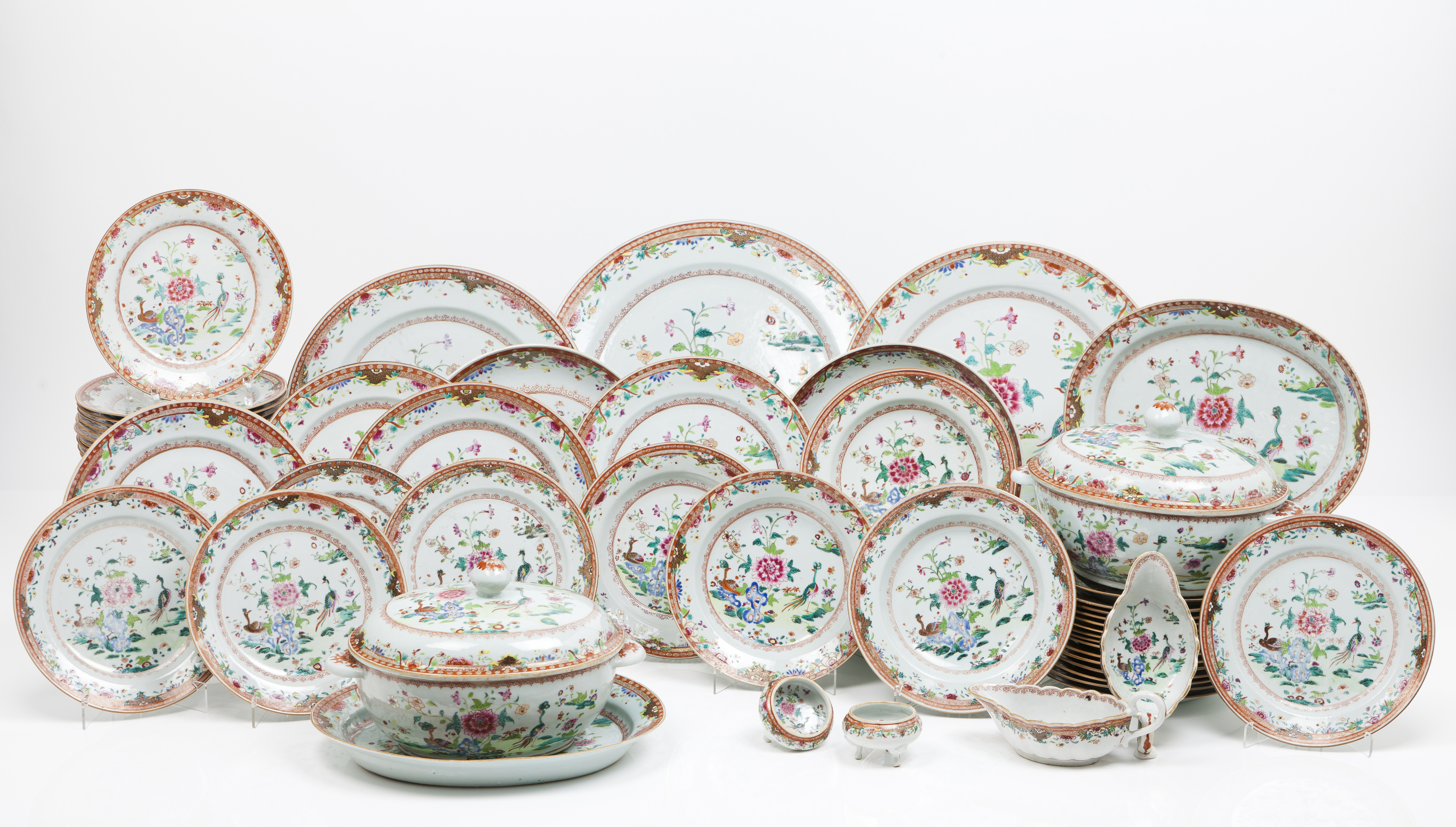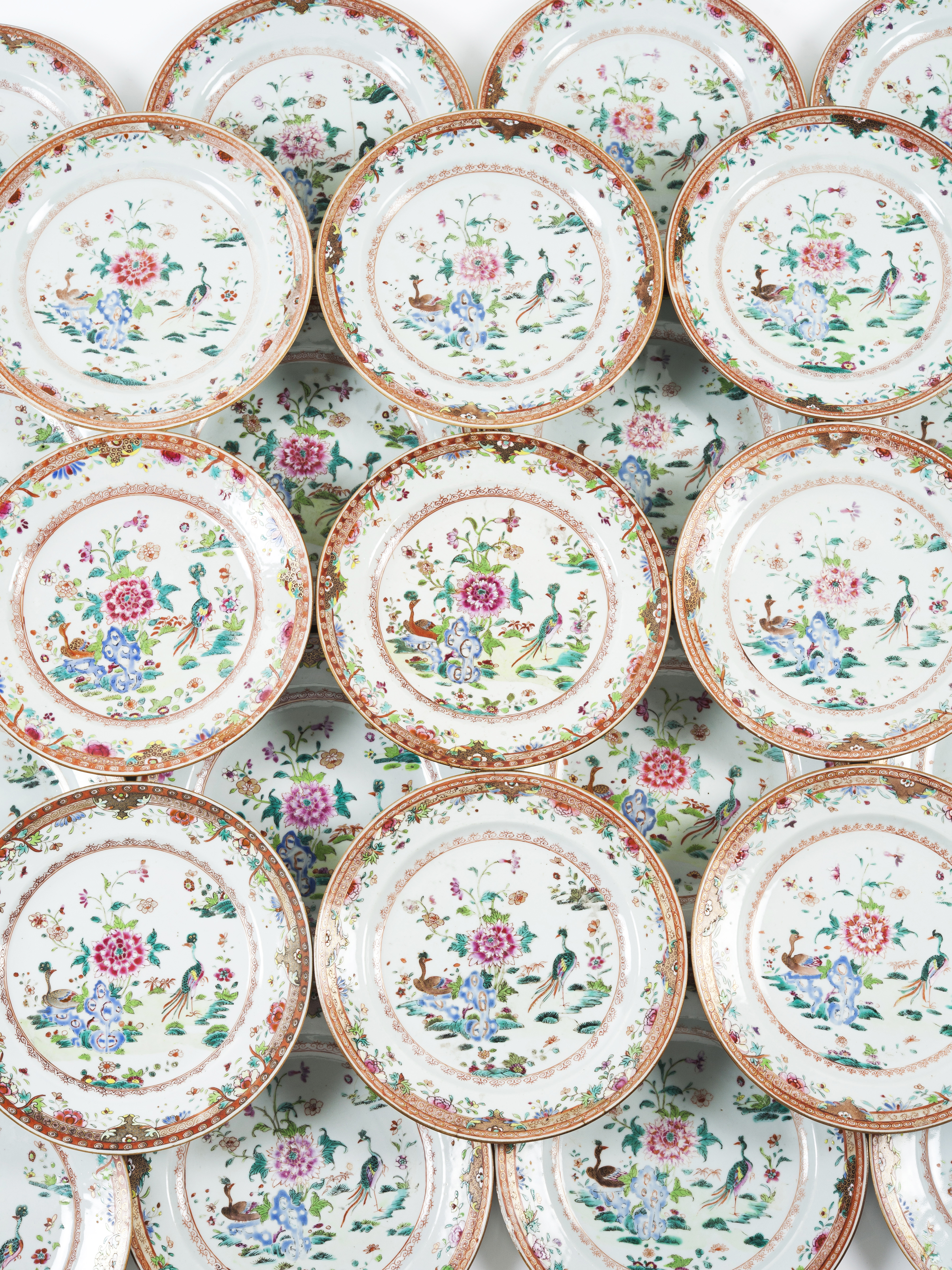 Polychrome "Famille Rose" enamelled decoration depicting landscapes with peacocks