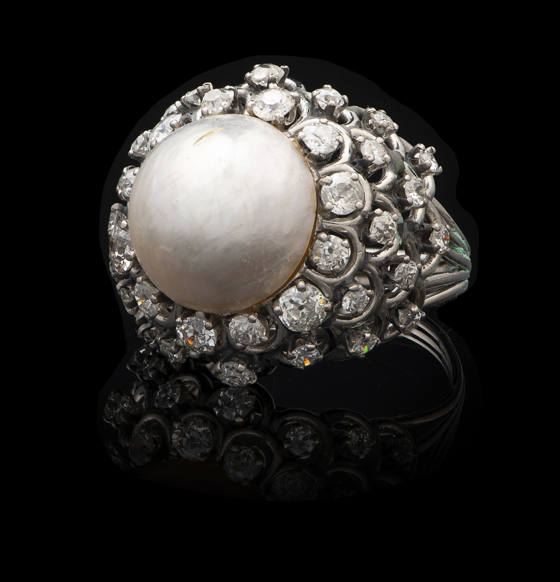 A pearl and diamond ring