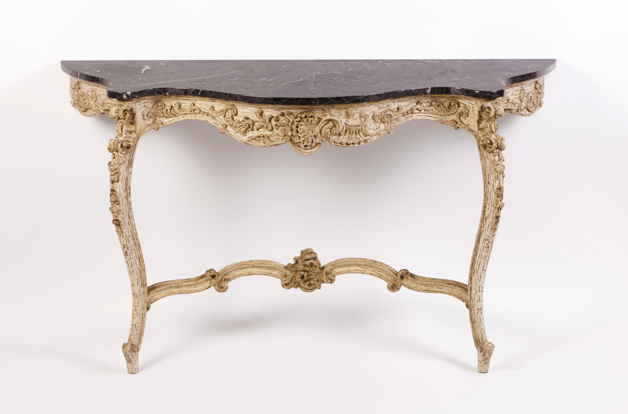 Carved wood with traces of gilding Marble top