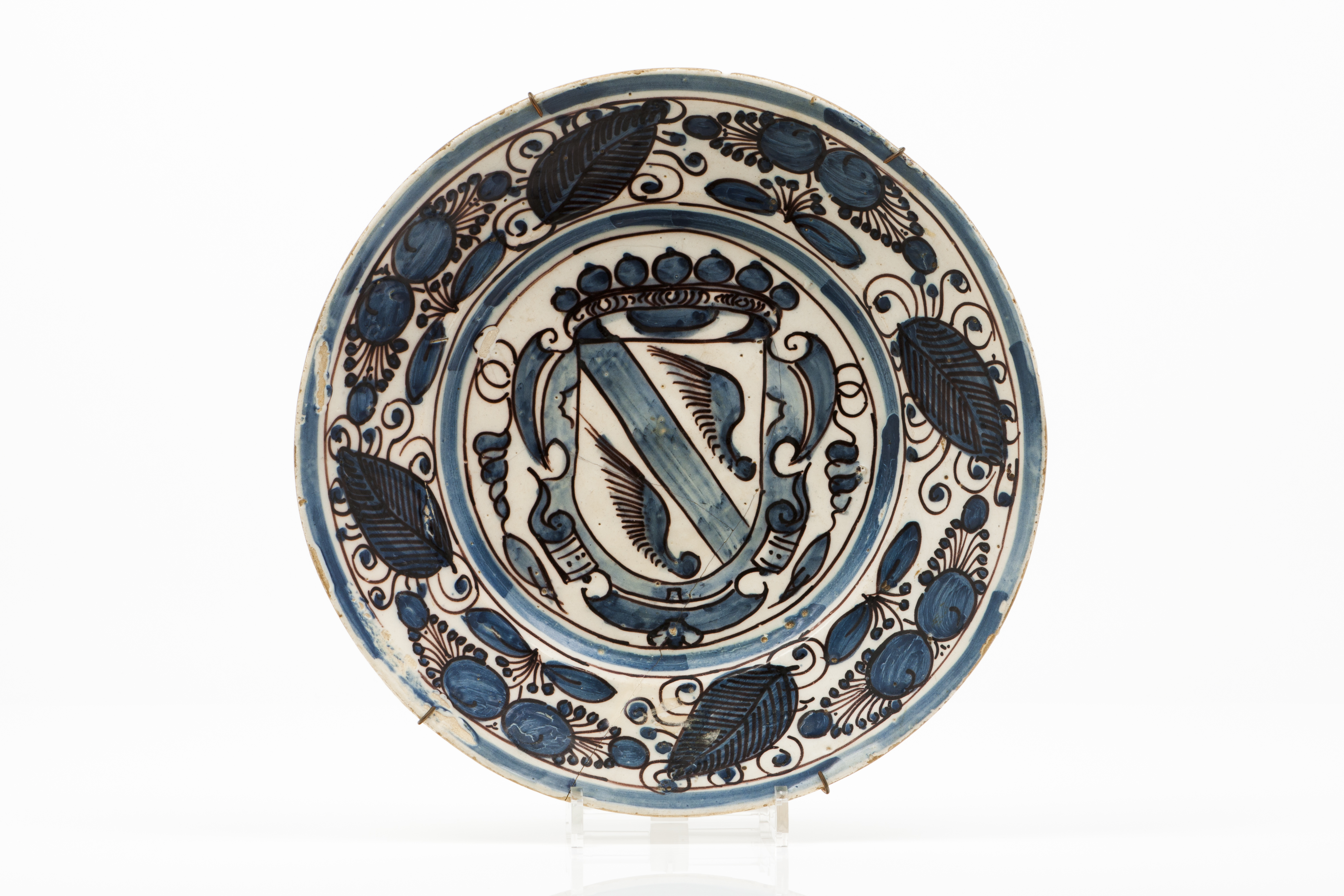 Cobalt blue "aranhões" decoration with central armorial shied