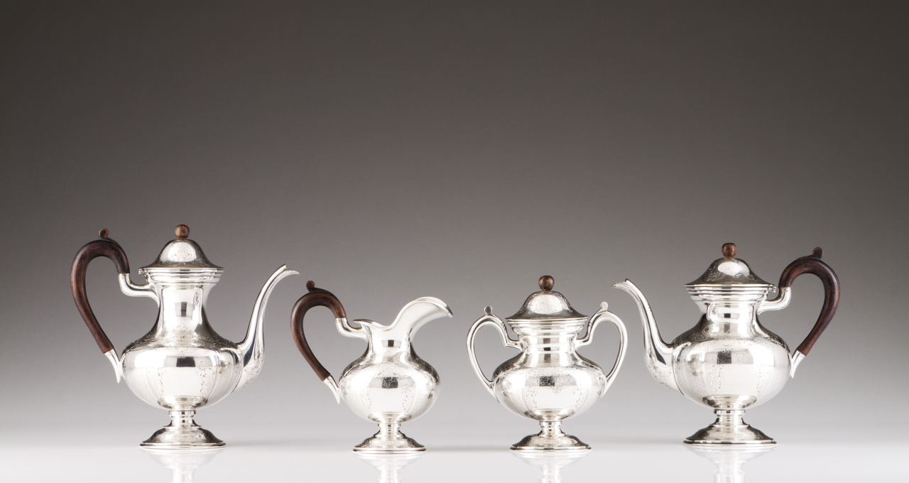 Comprising: tea pot, coffee pot, milk jug and sugar bowl with cover