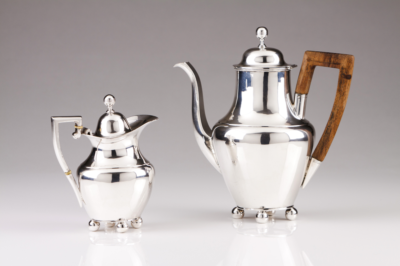 Plain decoration, four ball feet, silver handle