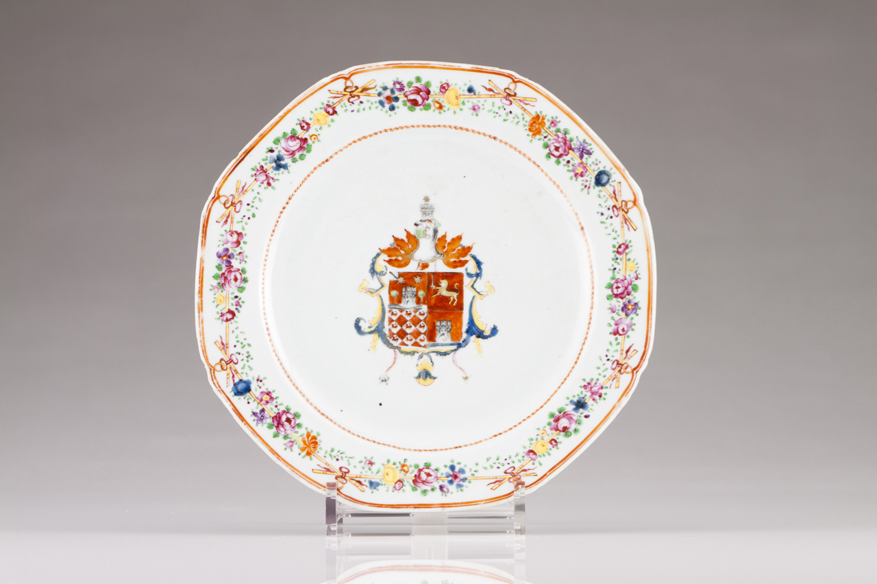 A Qianlong armorial octogonal plate, for the Portuguese market