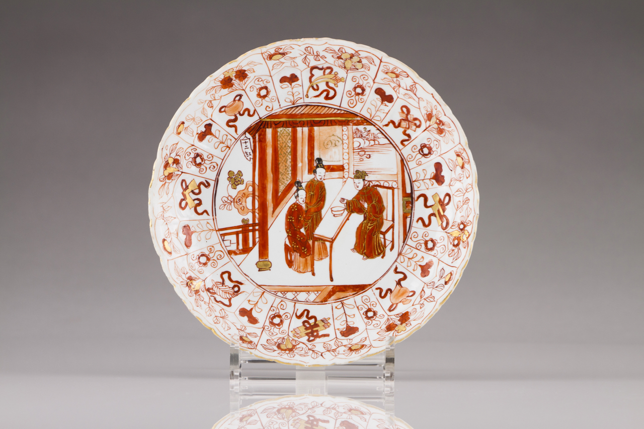 Rouge de fer decoration depicting interior scene with oriental figures