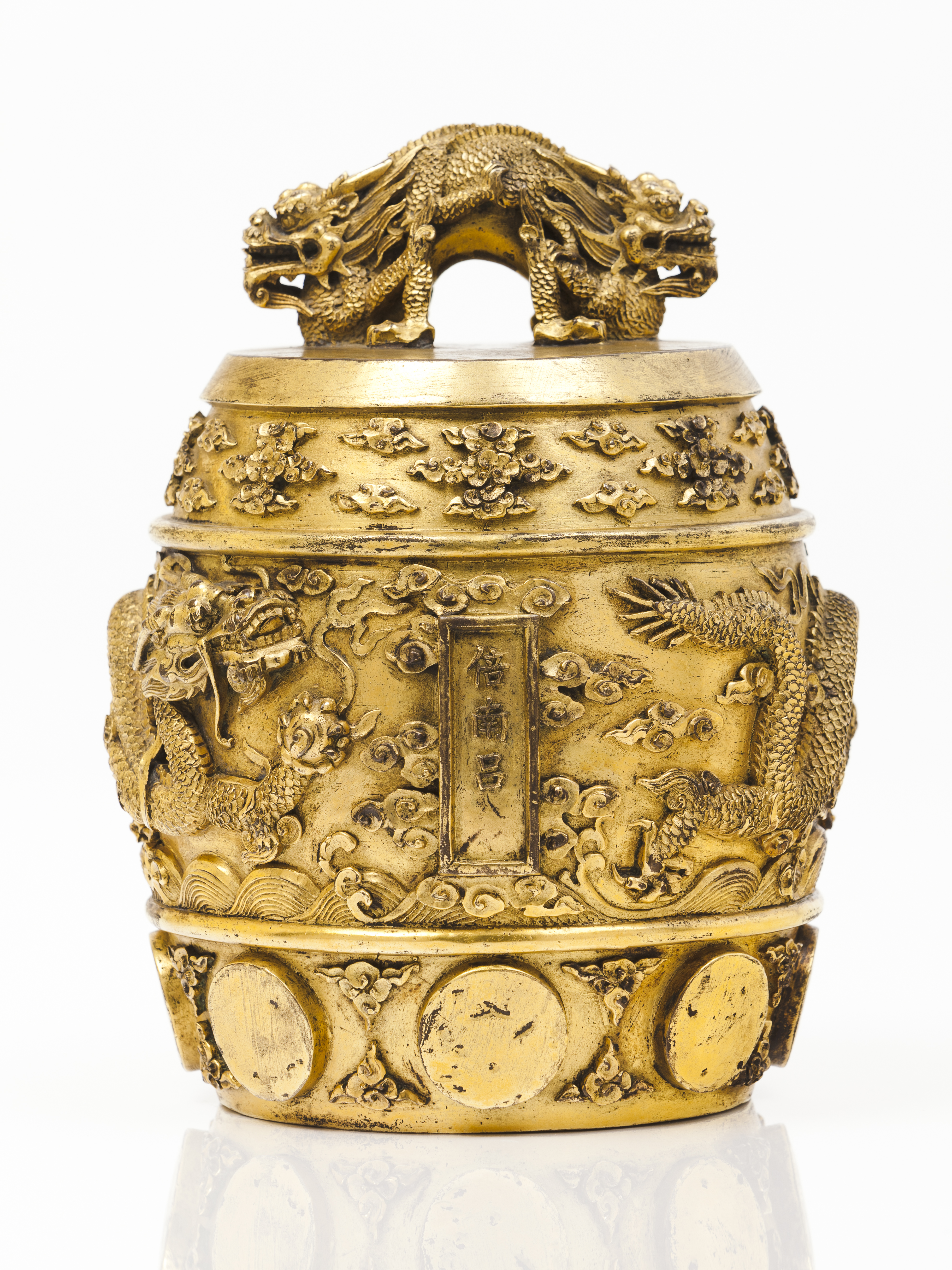 A rare Imperial Gilt-Bronze 'Dragon' ritual bell