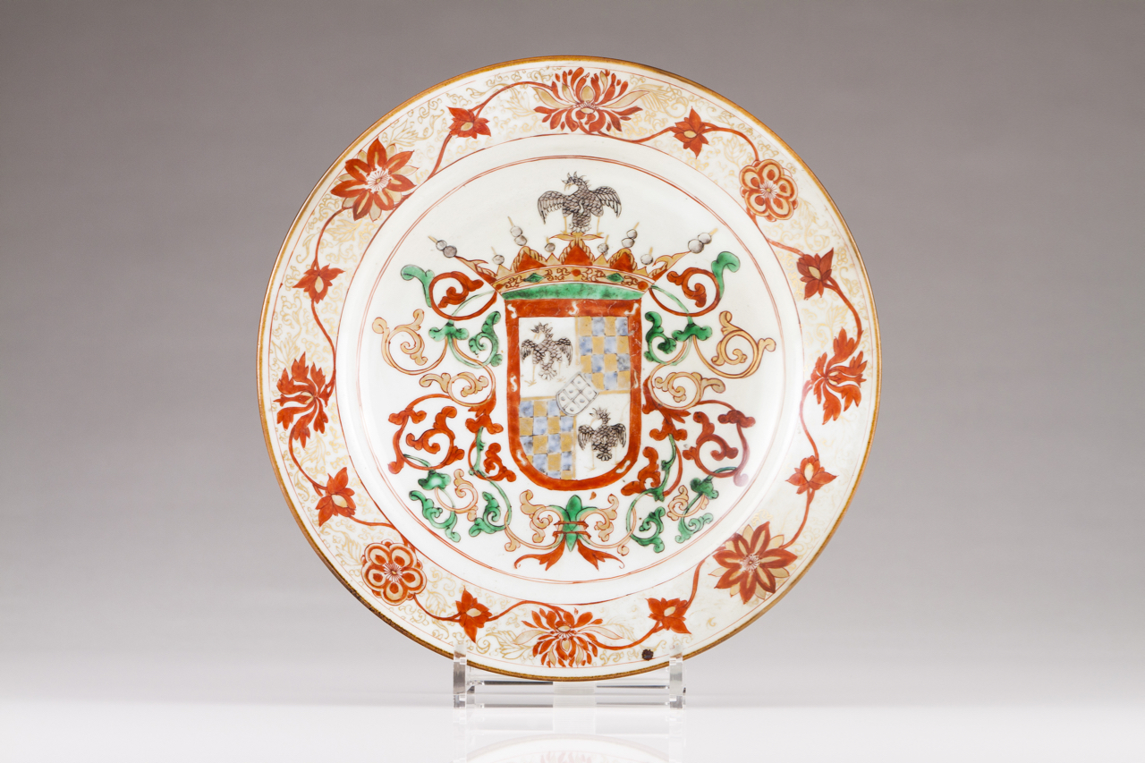 A rare Kangxi armorial footed salver, for the Portuguese market, ca. 1700-1720