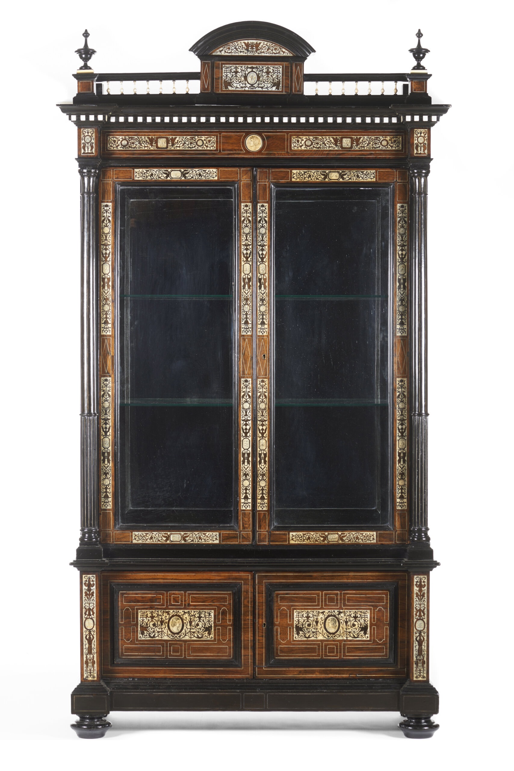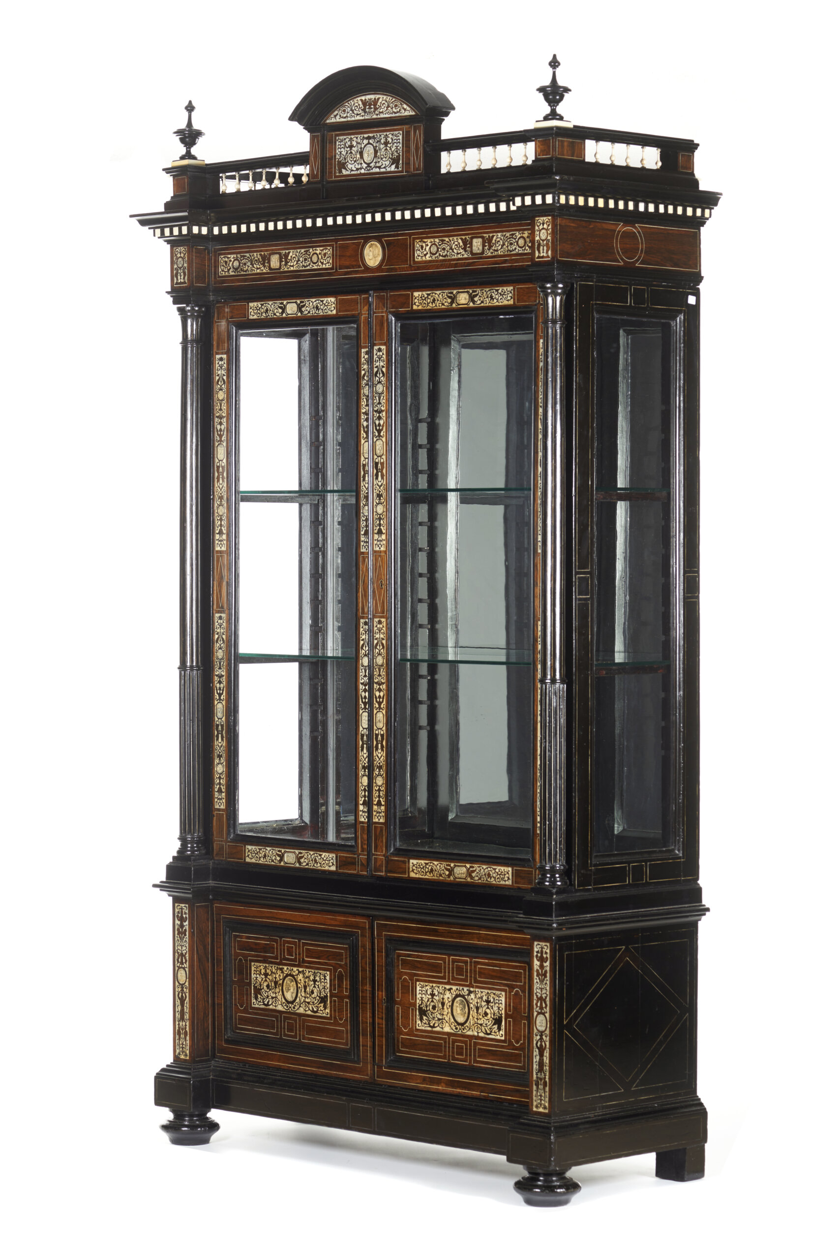 A Renaissance-style ebonised wood and ivory display cabinet