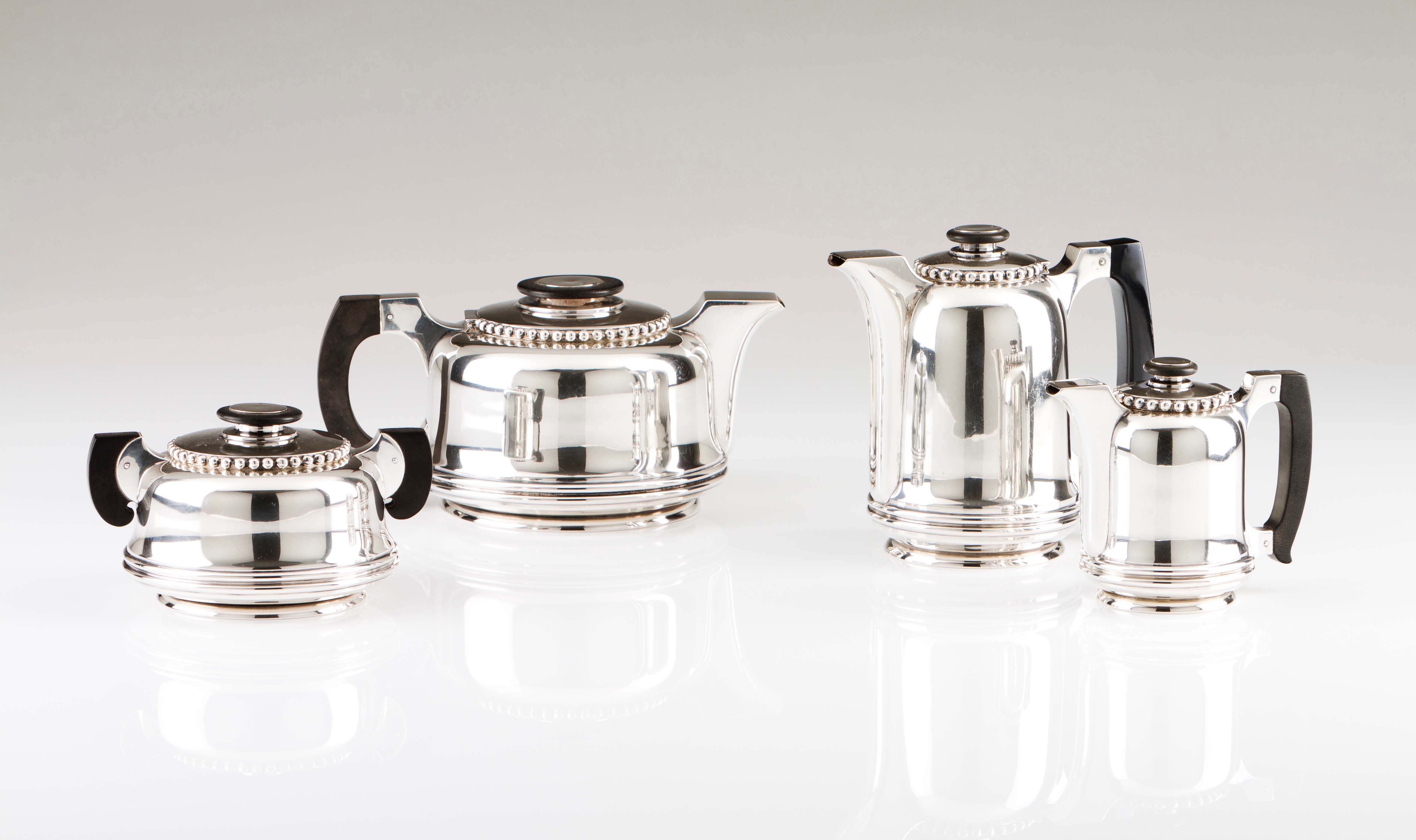 Comprising: a teapot, a coffee pot, a milk jug with cover and a sugar bowl with cover
