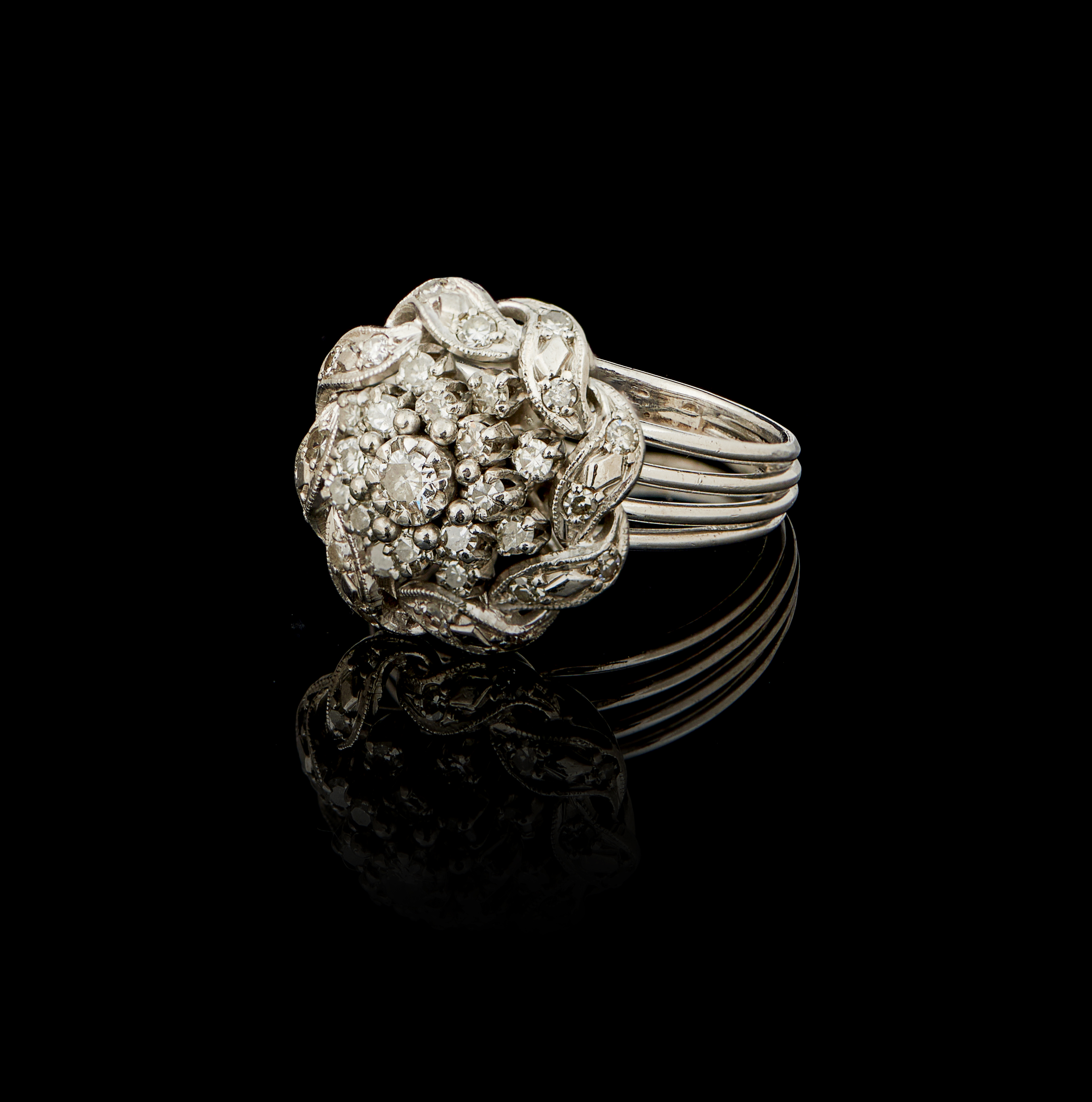 Set with 32 8/8 cut diamonds totalling approximately 0,65 ct. and 1 brilliant cut diamond of approximately 0,16 ct.