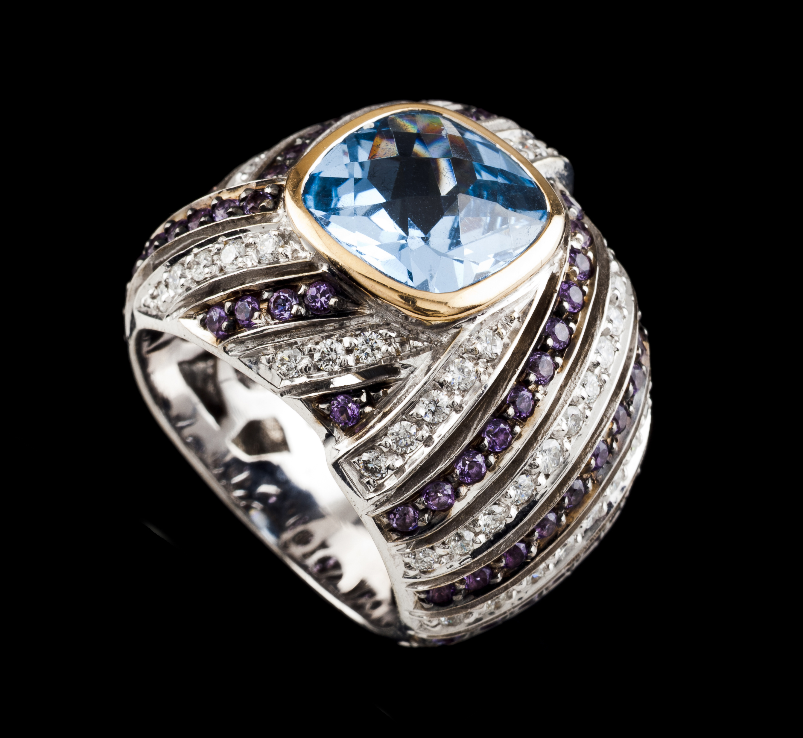 Set with topaz, amethysts and 66 brilliant cut diamonds totalling approximately 0,66 ct.