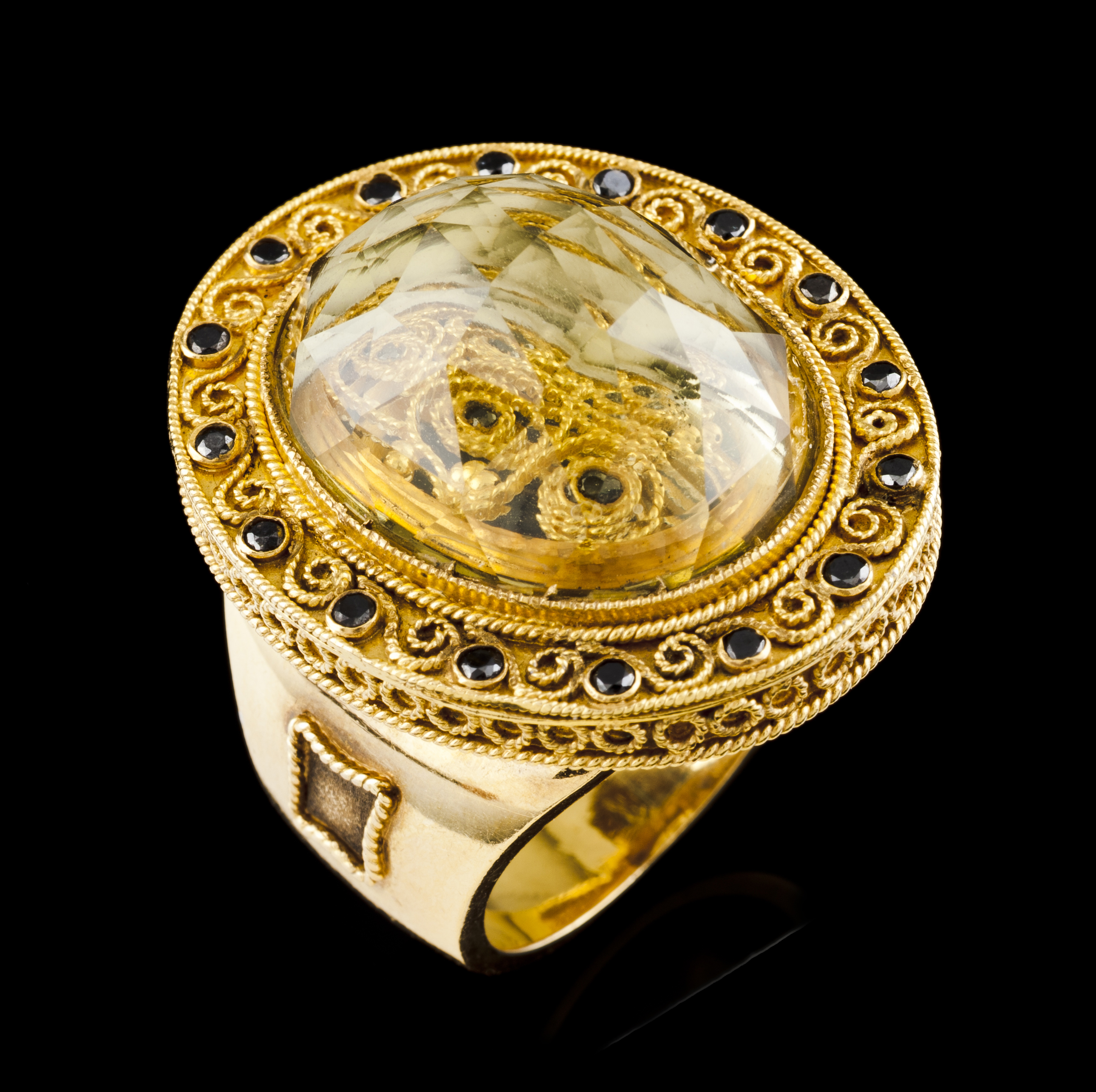 Filigree decoration set with 21 brilliant cut dark diamonds
