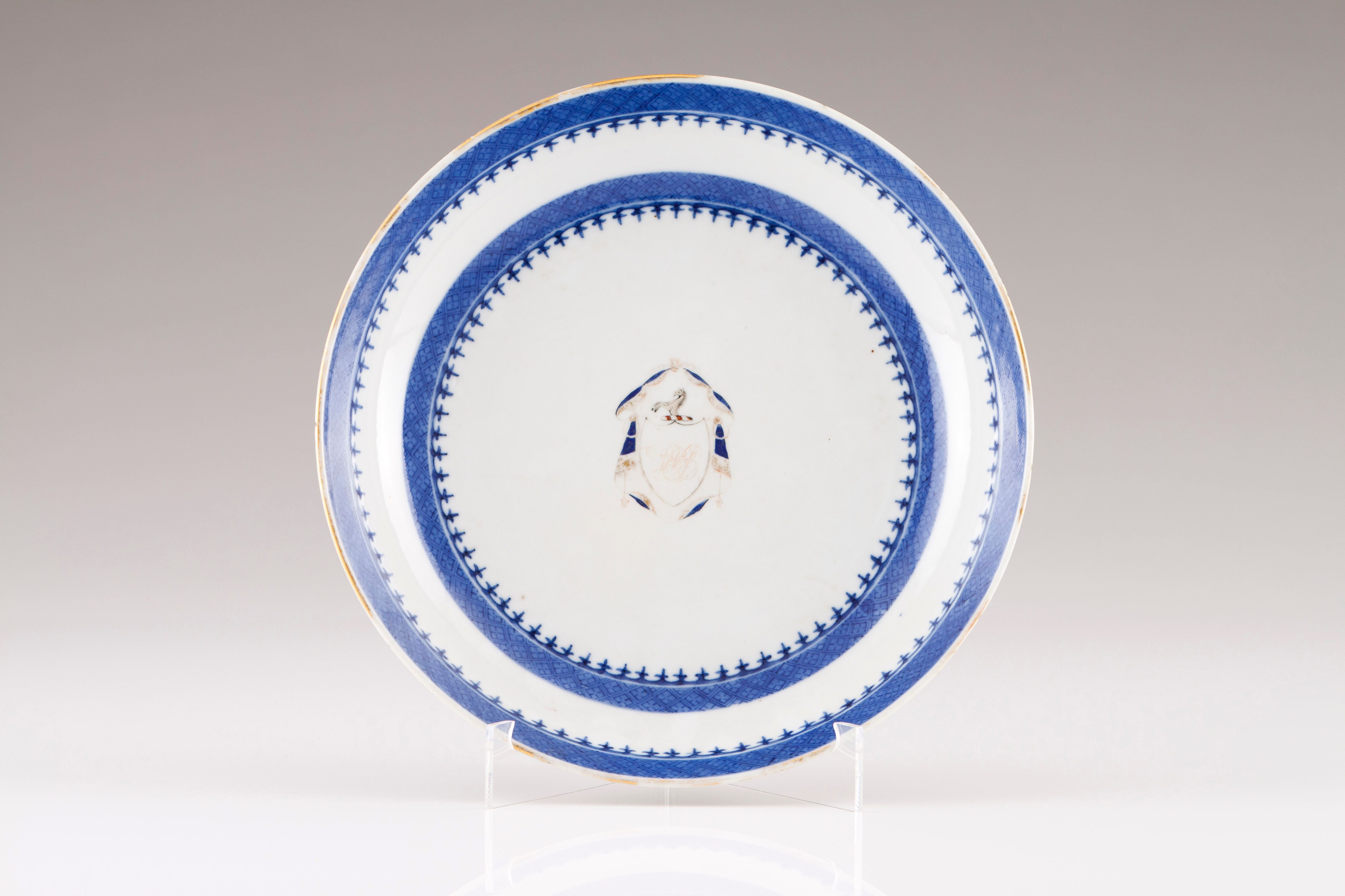 Blue and gilt decoration with monogram at the centre