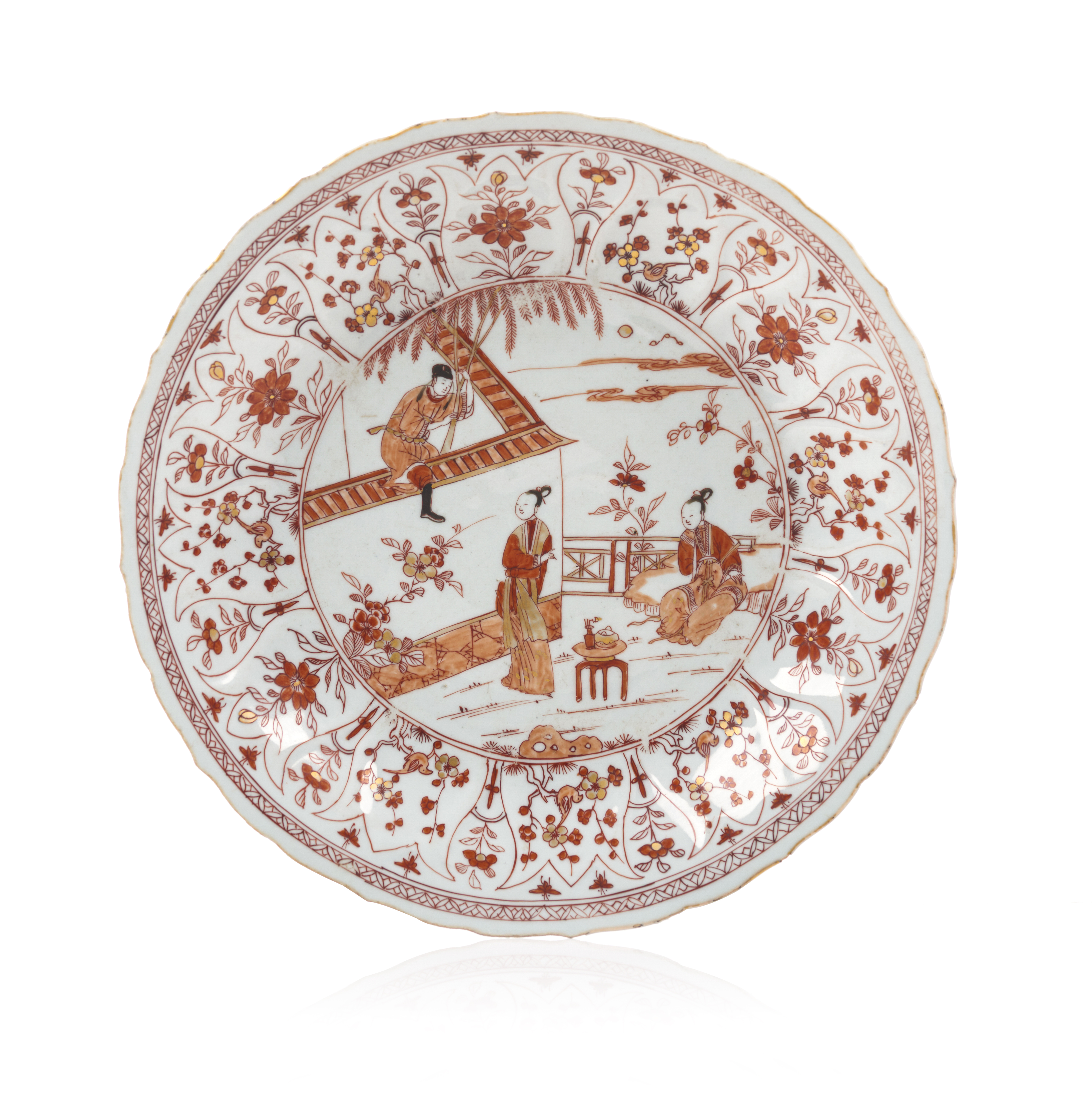 Polychrome, gilt and iron oxide decoration of Chinese daily scenes