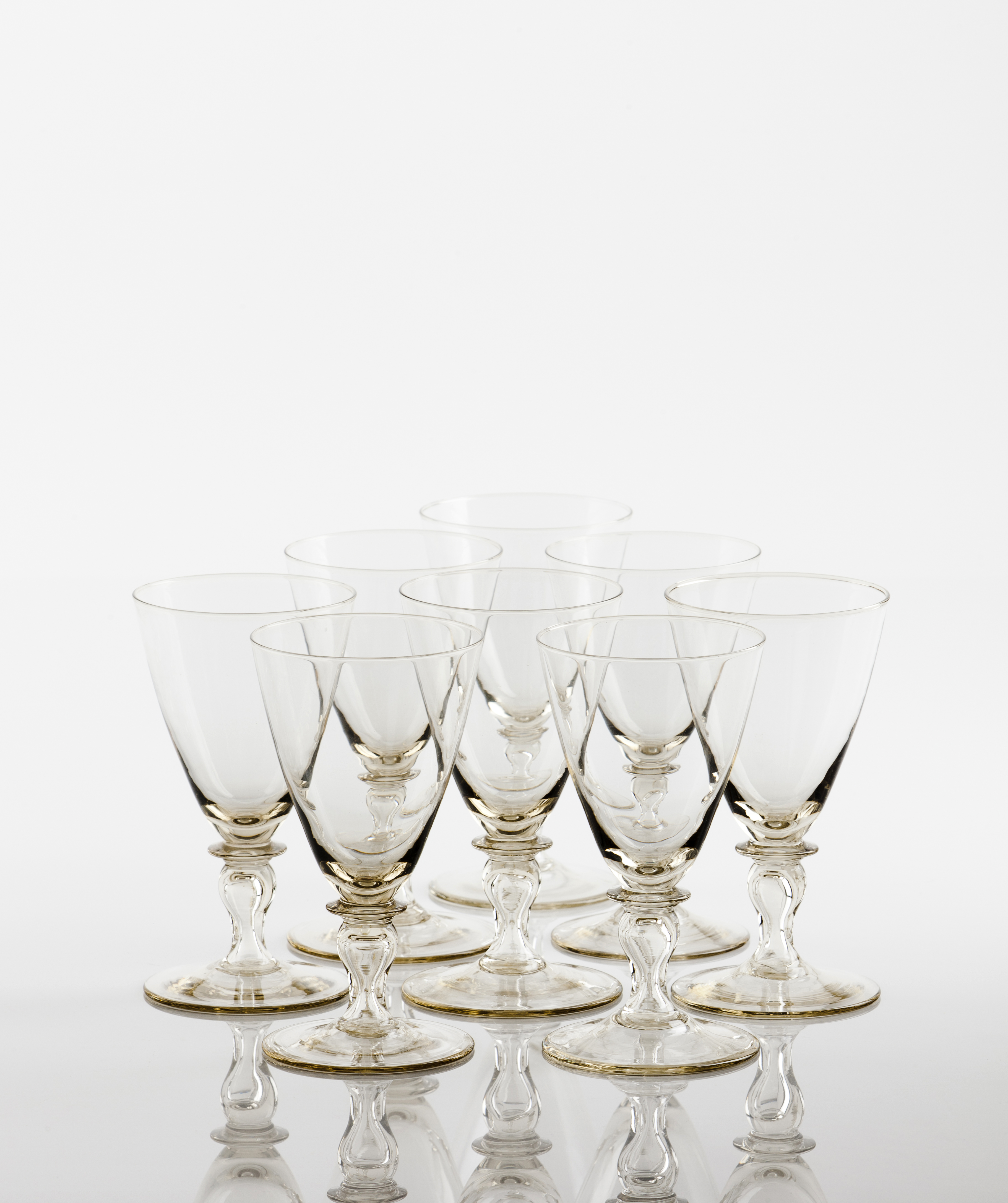 Blown glass, 12 white wine and 12 red wine glasses