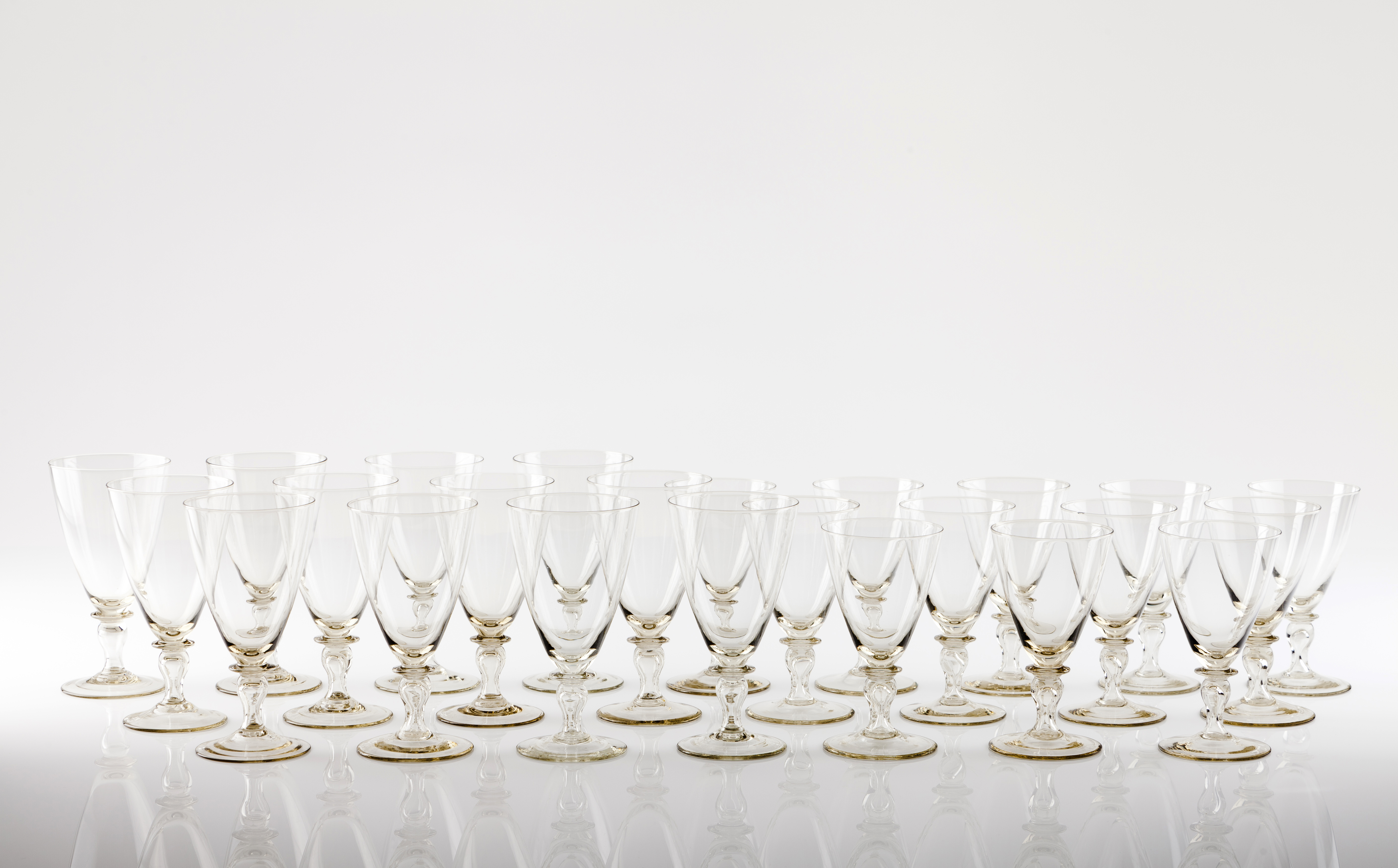 Blown glass, 12 white wine and 12 red wine glasses