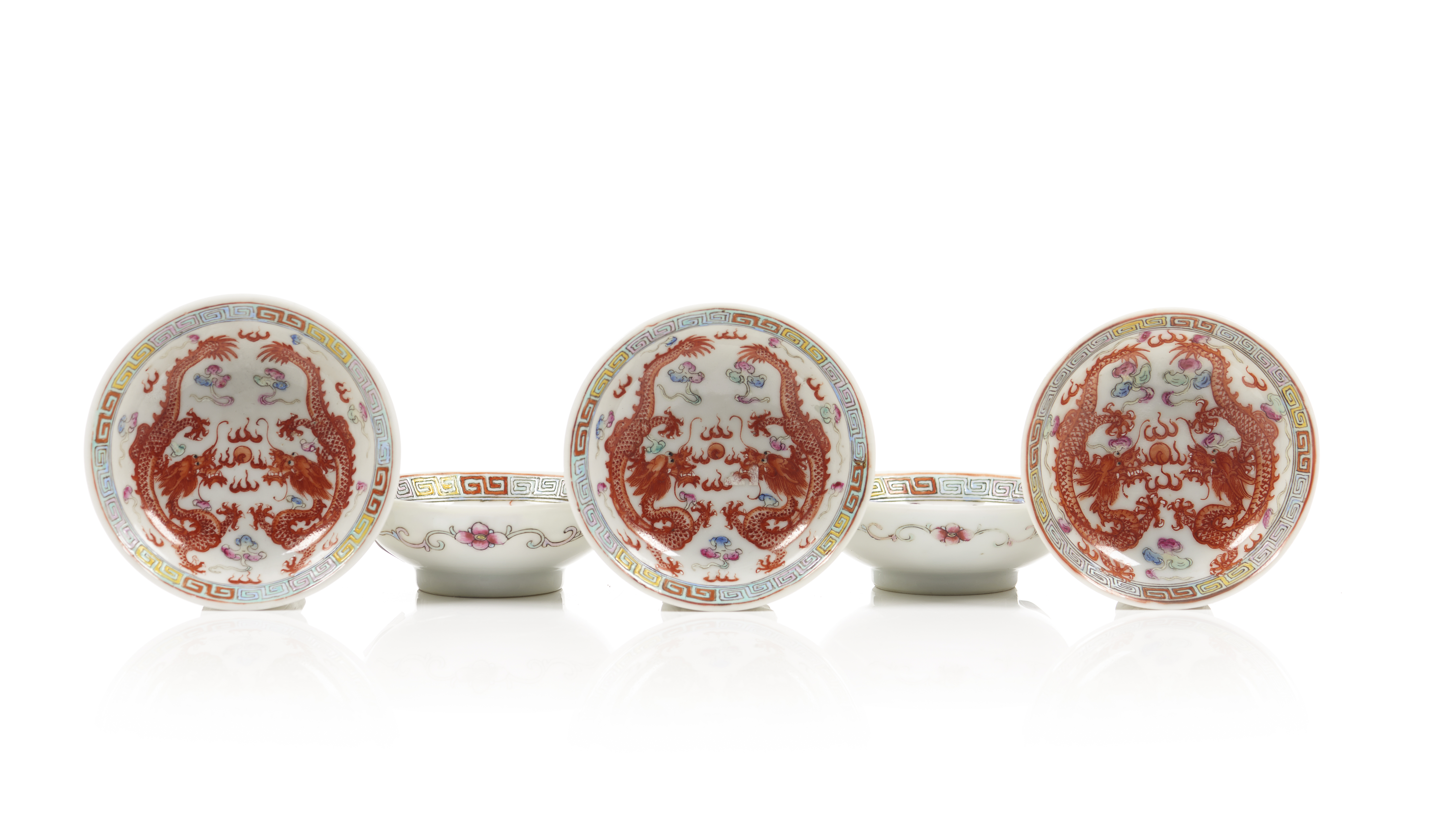Famille Rose enamels and rouge-de-fer depicting dragons