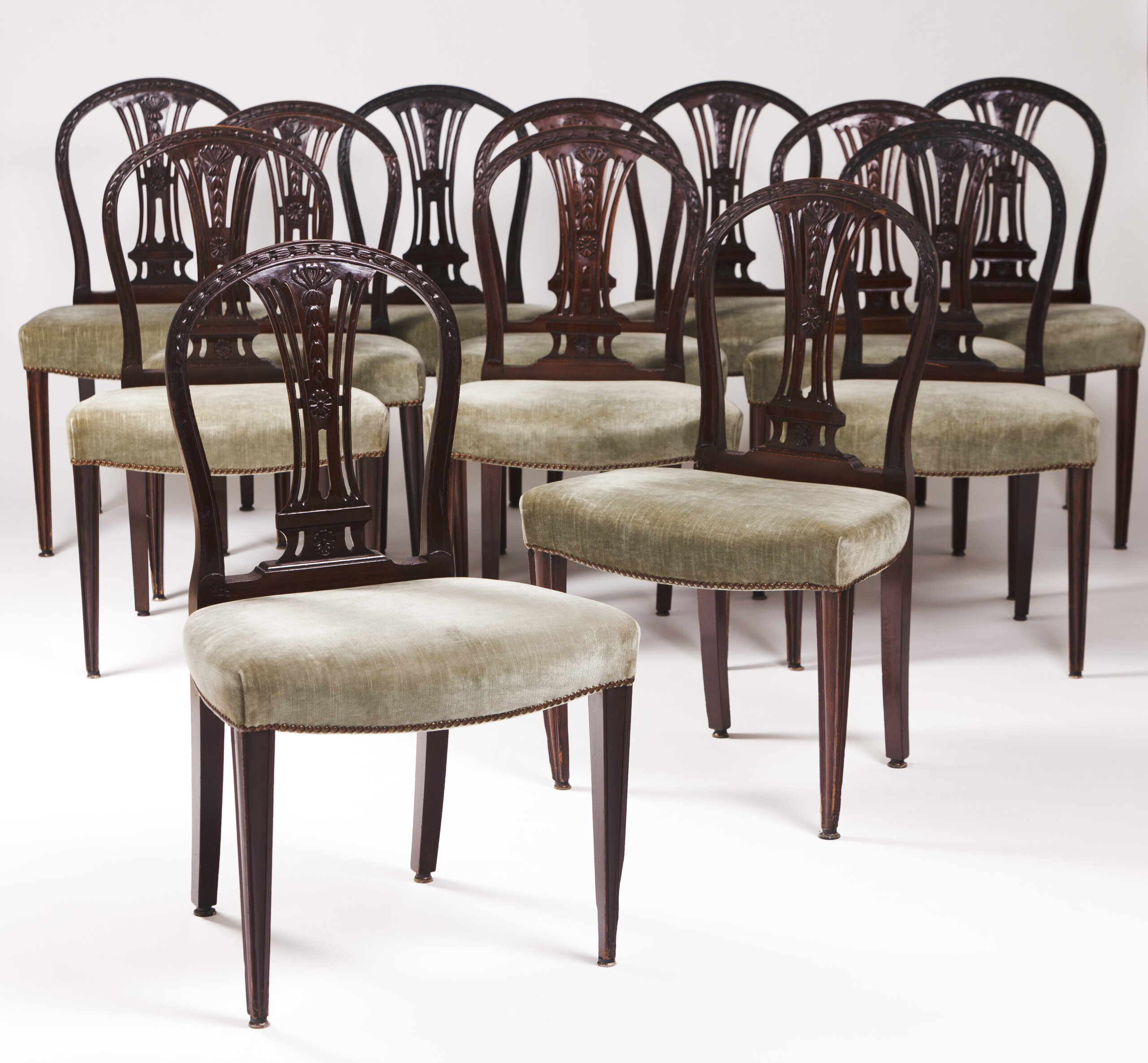 Pierced shield-shaped backrest, carved with vegetal-inspired motifs
