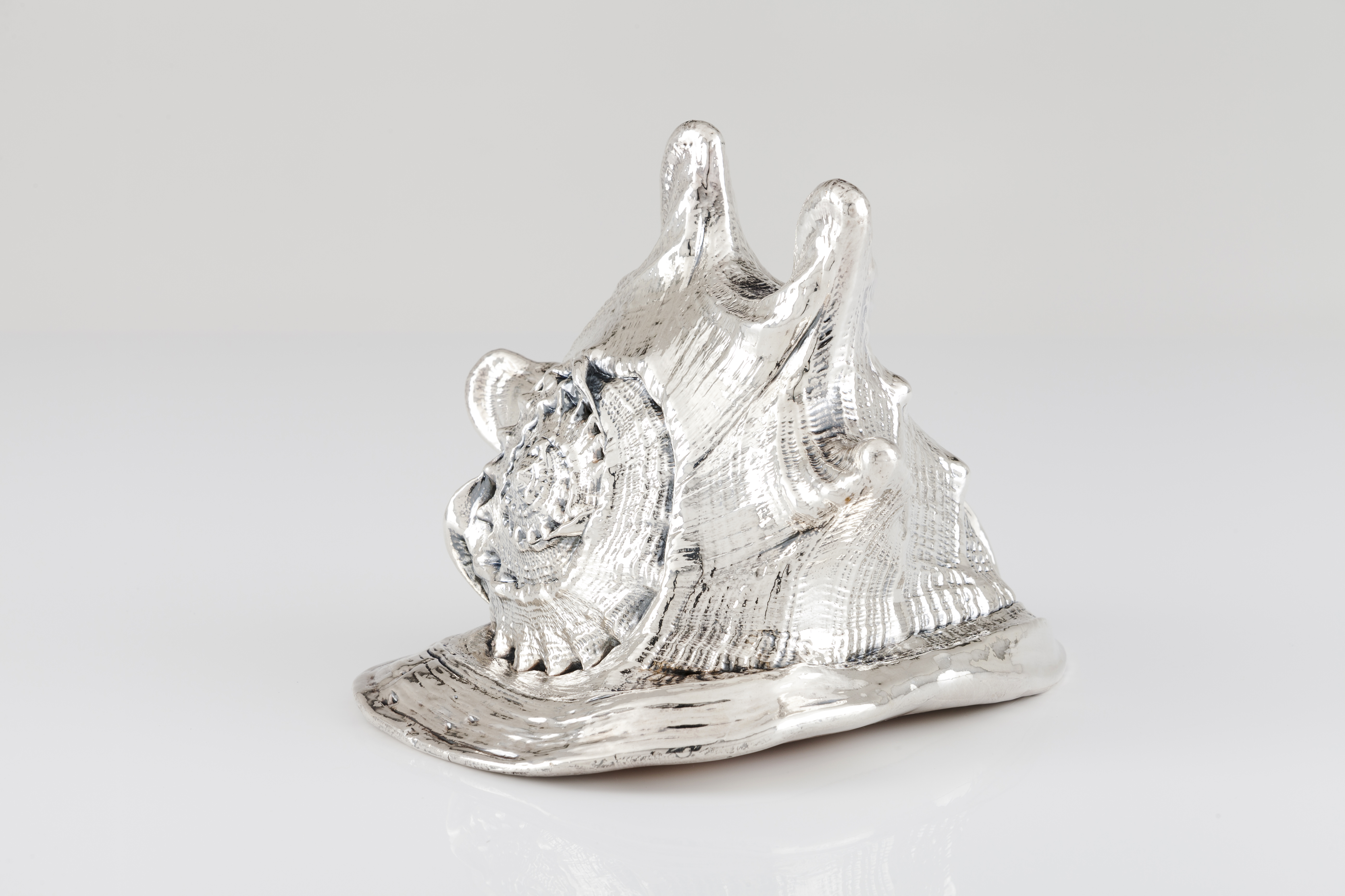 Large ornamental seashell lined in silver