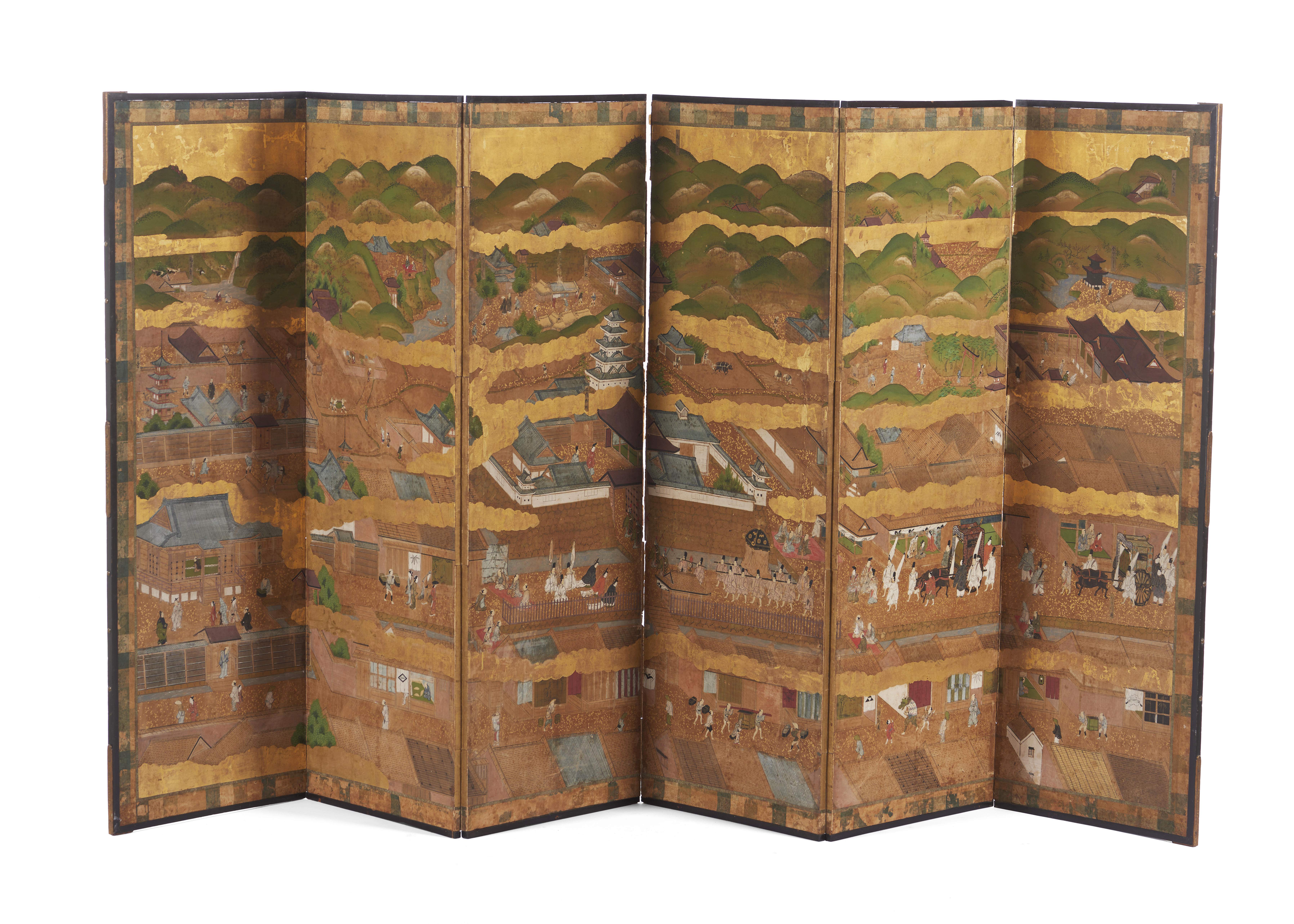 (faults and minor restoration, two screen leaves detached from the remaining)