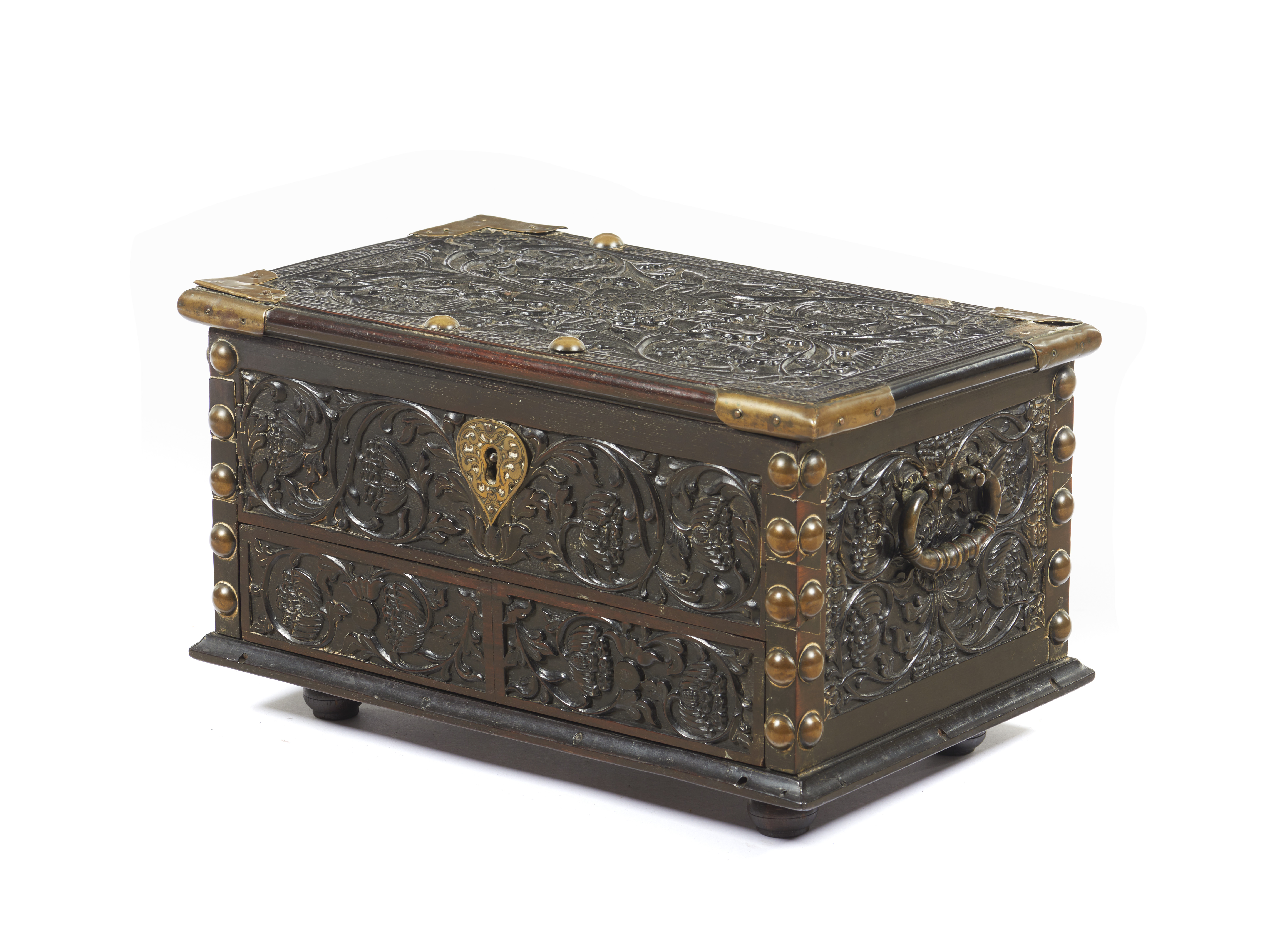 Profuse carved decoration of scrolls and floral motifs