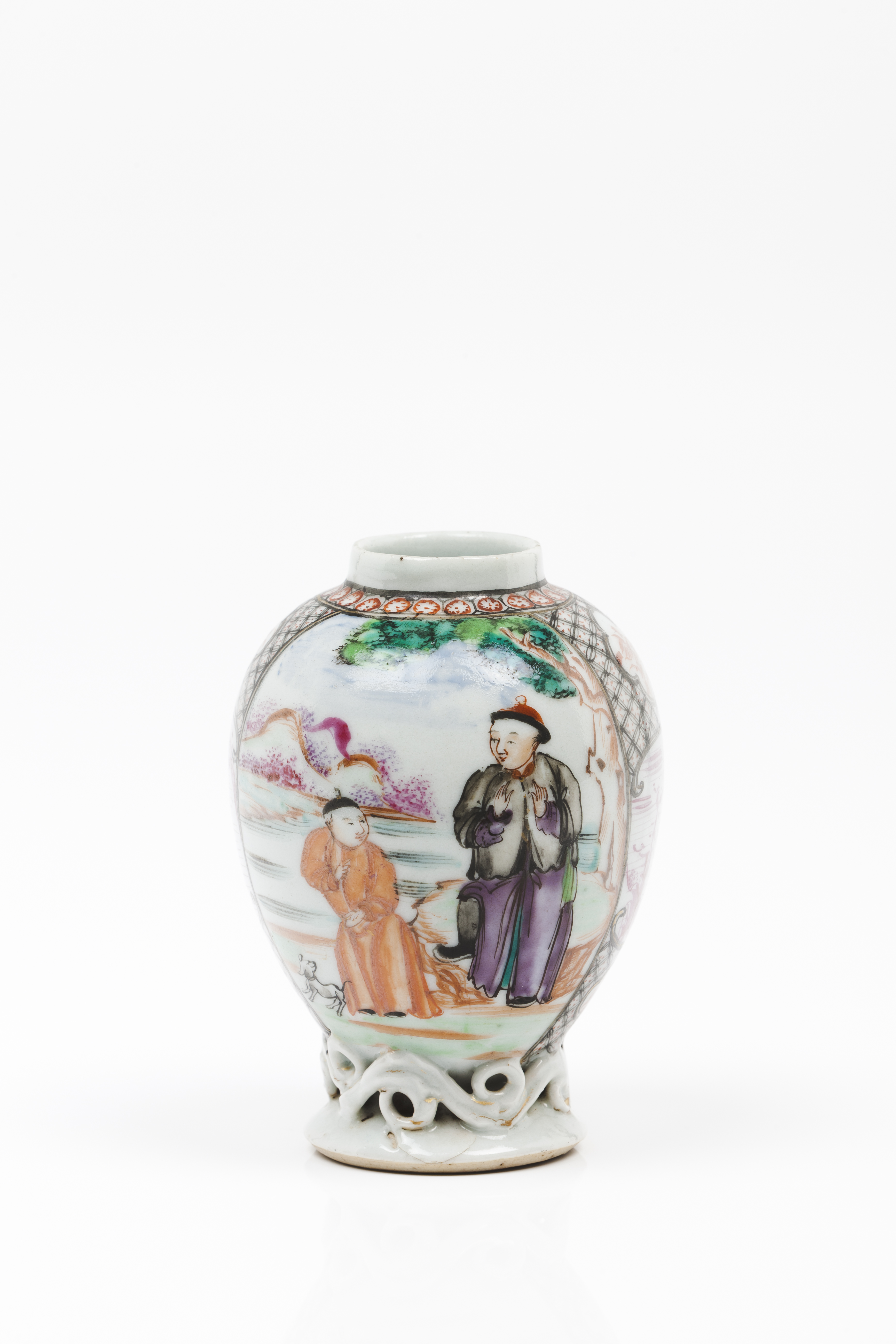 Polychrome "Famille Rose" enamelled decoration of Chinese daily scenes