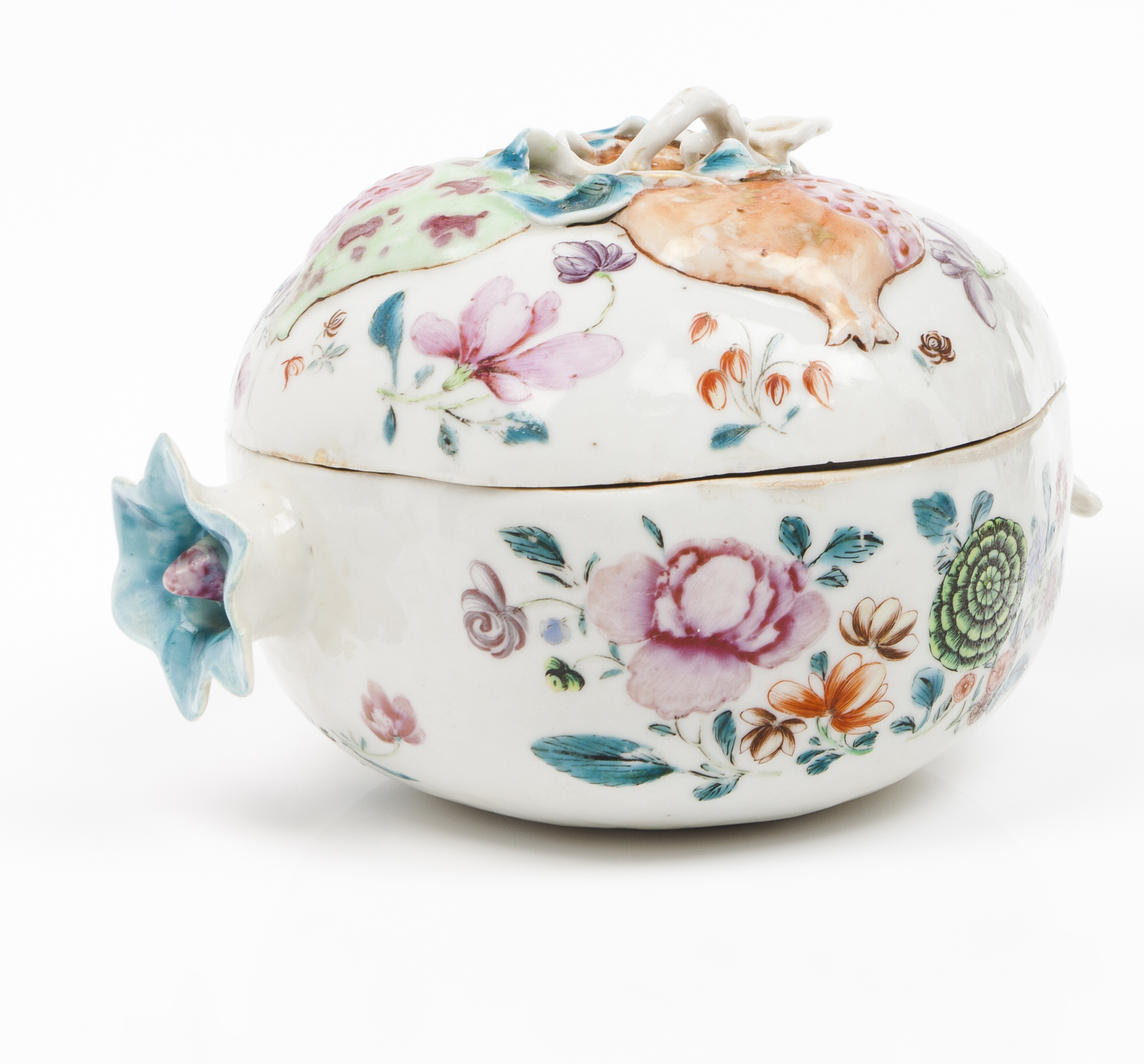 Reliefs and polychrome and gilt "Famille Rose" enamelled decoration with pomegranate and floral motifs