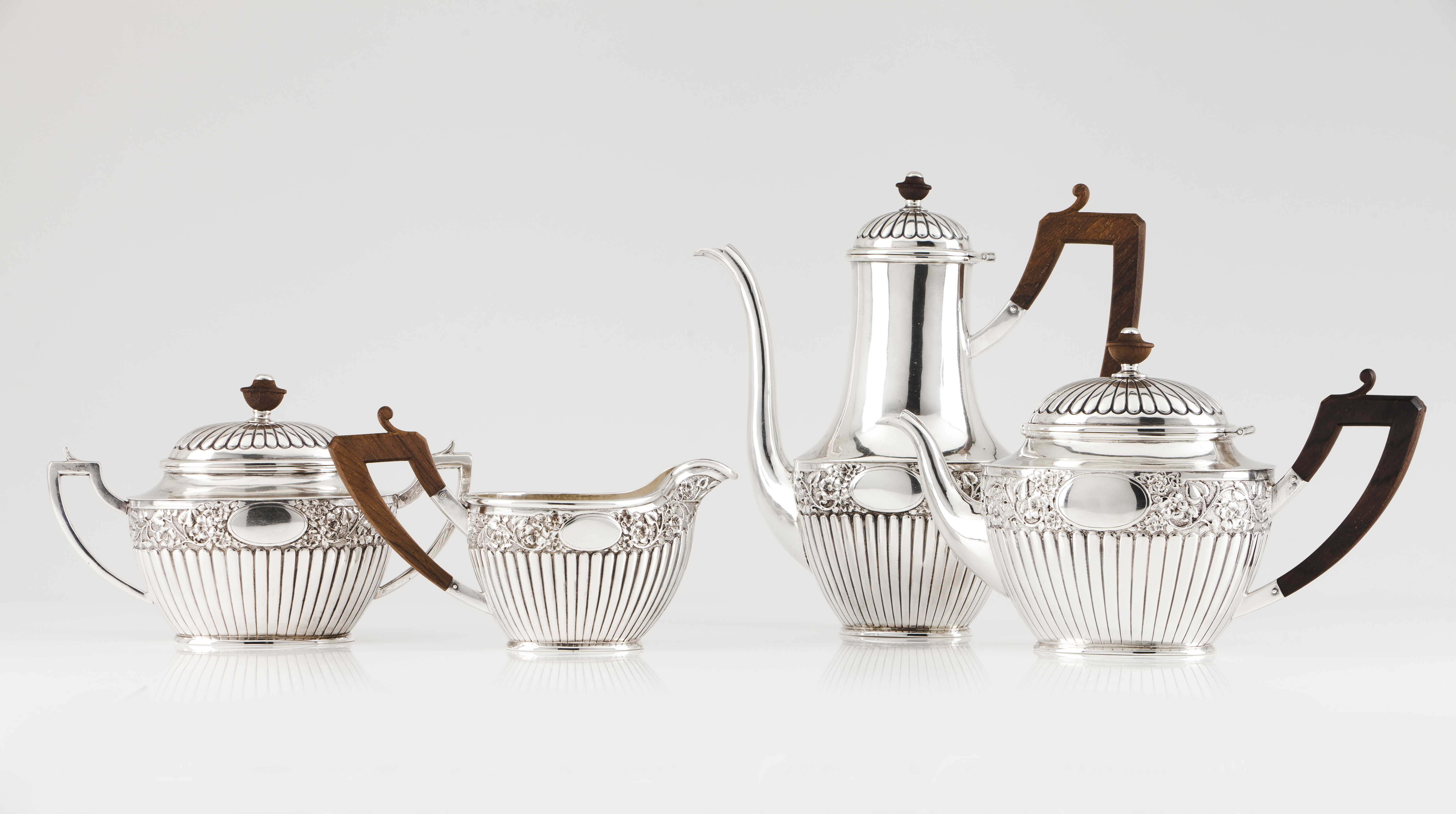 Teapot, coffee pot, milk jug and sugar bowl