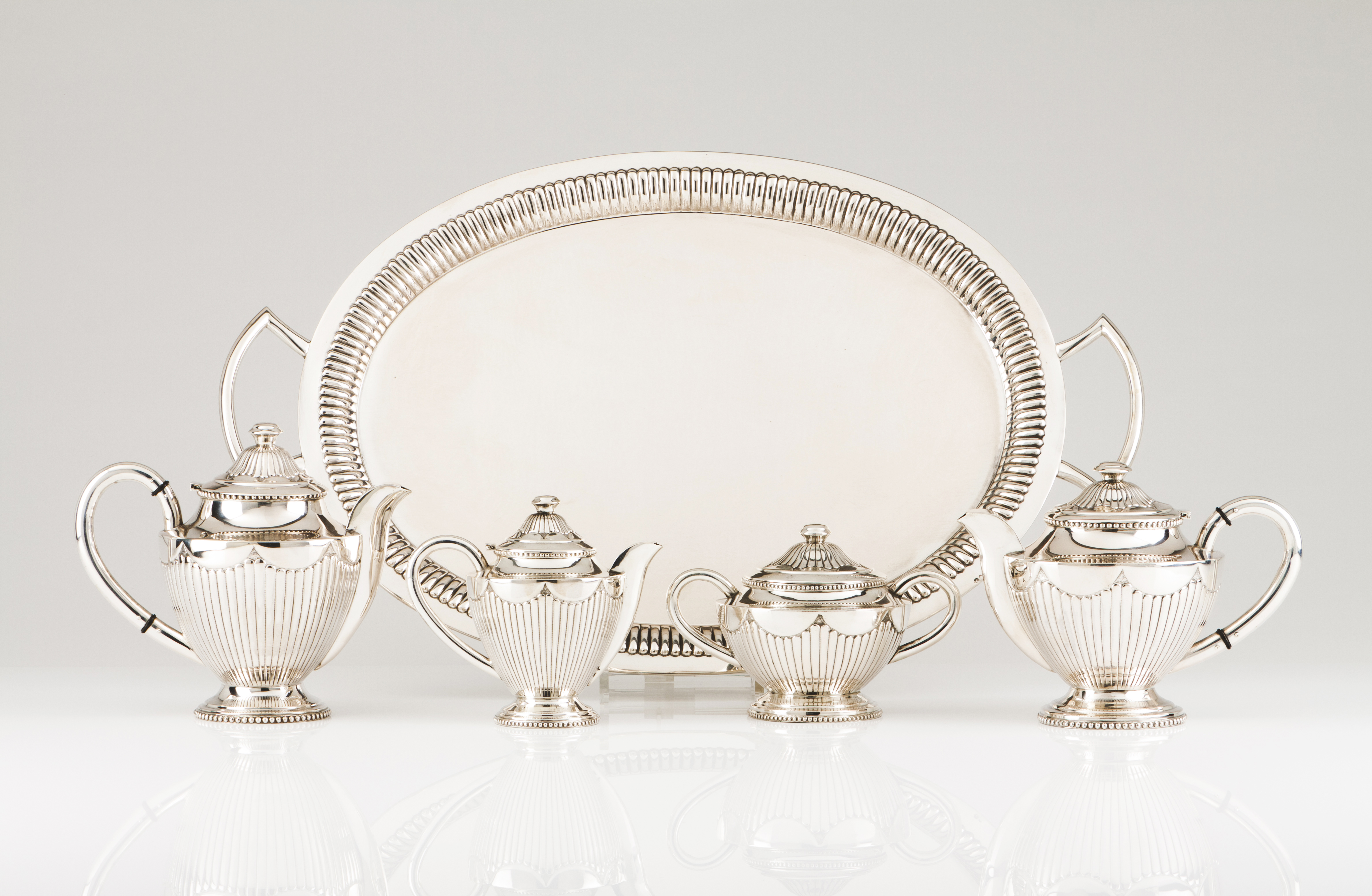 A tea and coffee set with tray