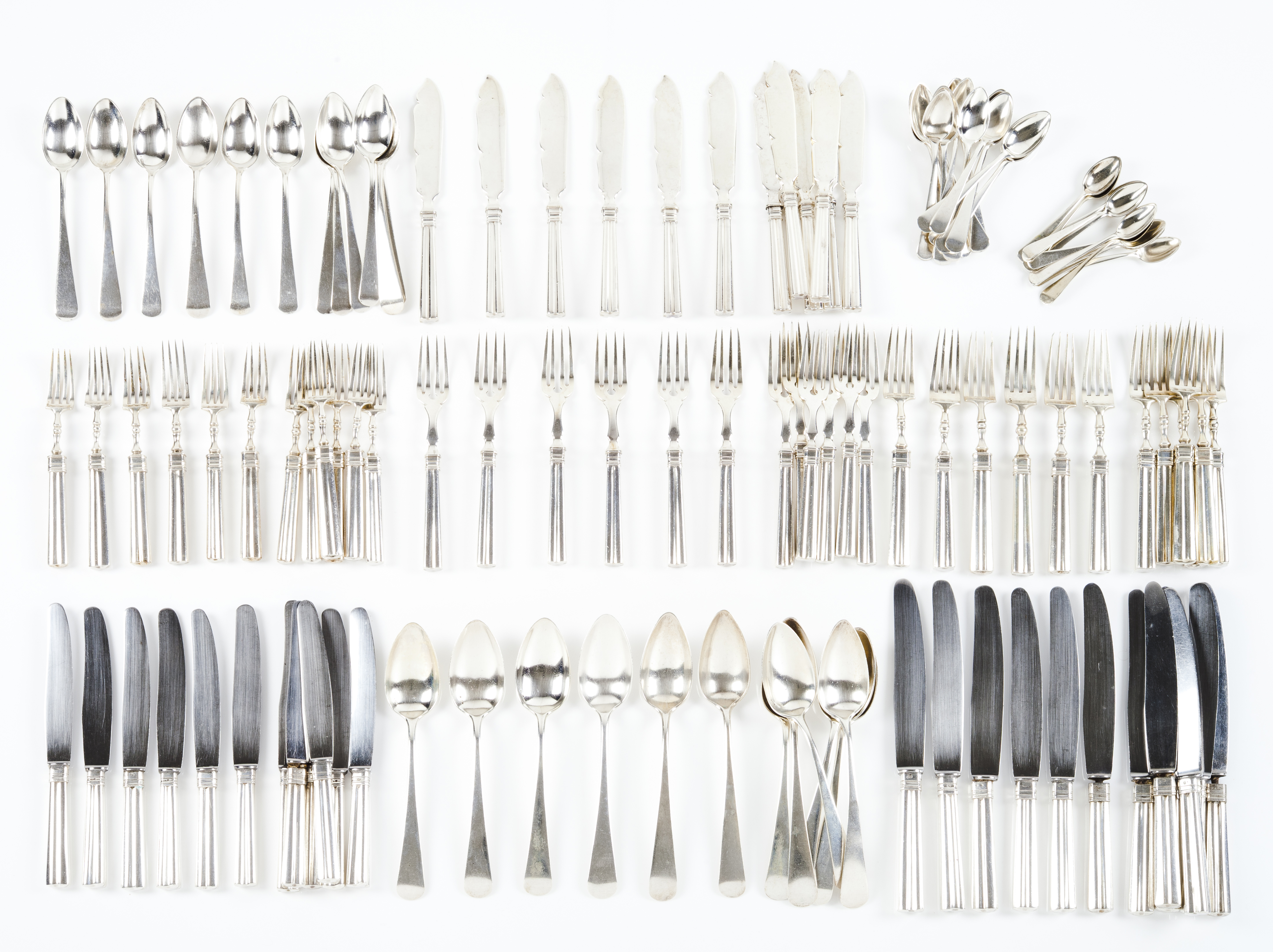 Soup spoons, meat forks and knives, fish forks and knives, dessert spoons, forks and knives, tea and coffee spoons