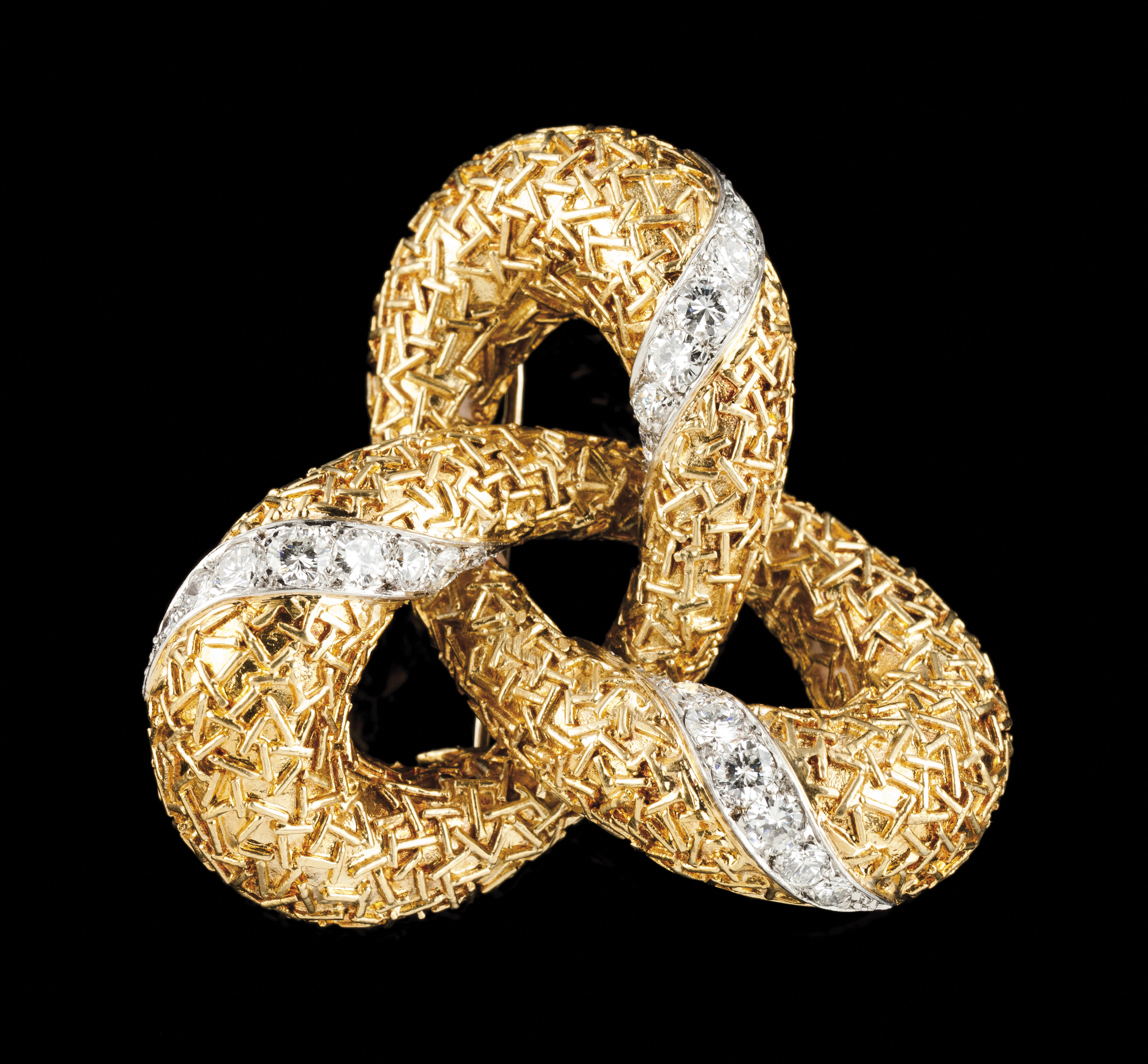 Stylised and textured bow set with 24 brilliant cut diamonds totalling (ca.2.40ct) possibly colour E and purity vvs