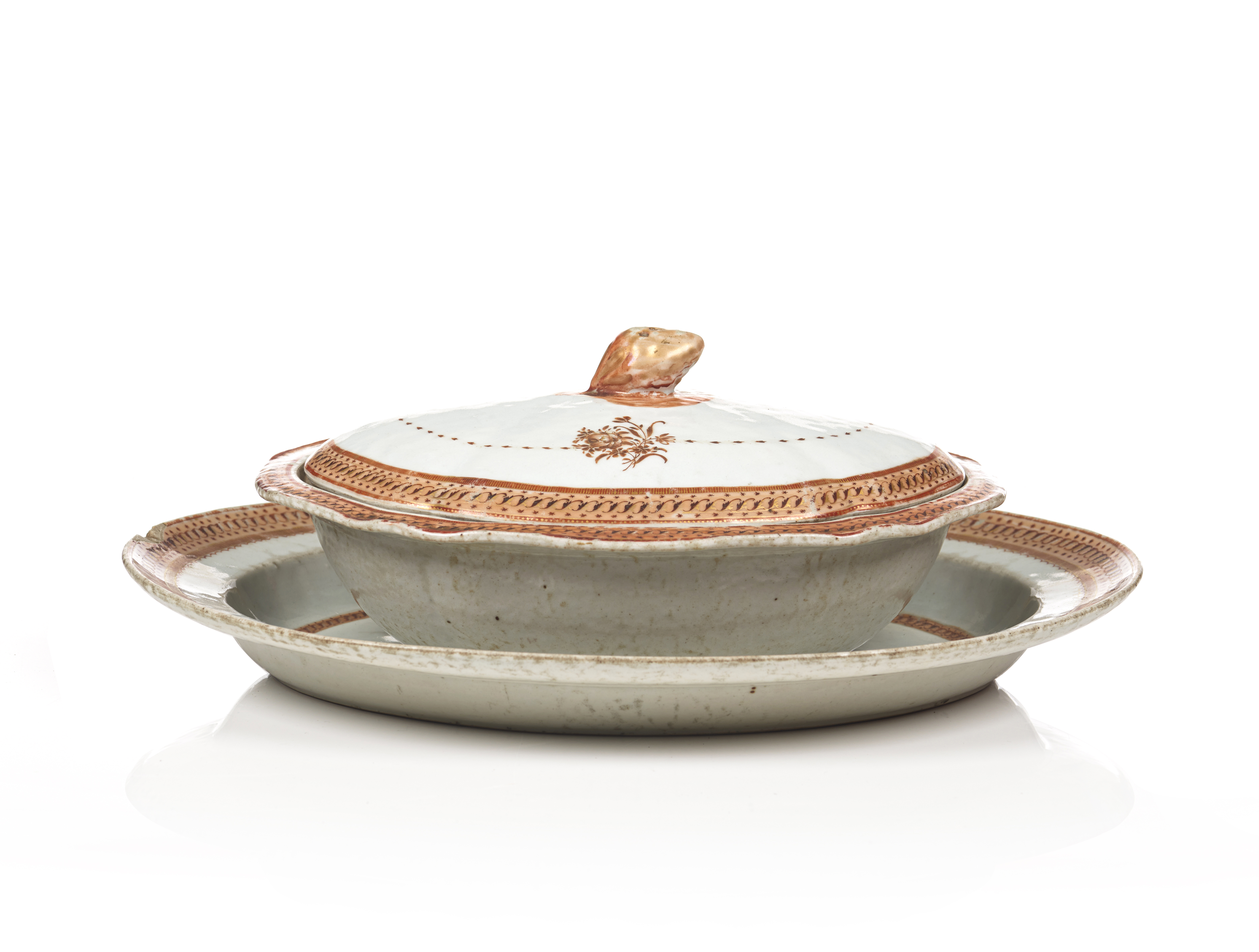 (wear to glaze and to decoration, loss to tray)