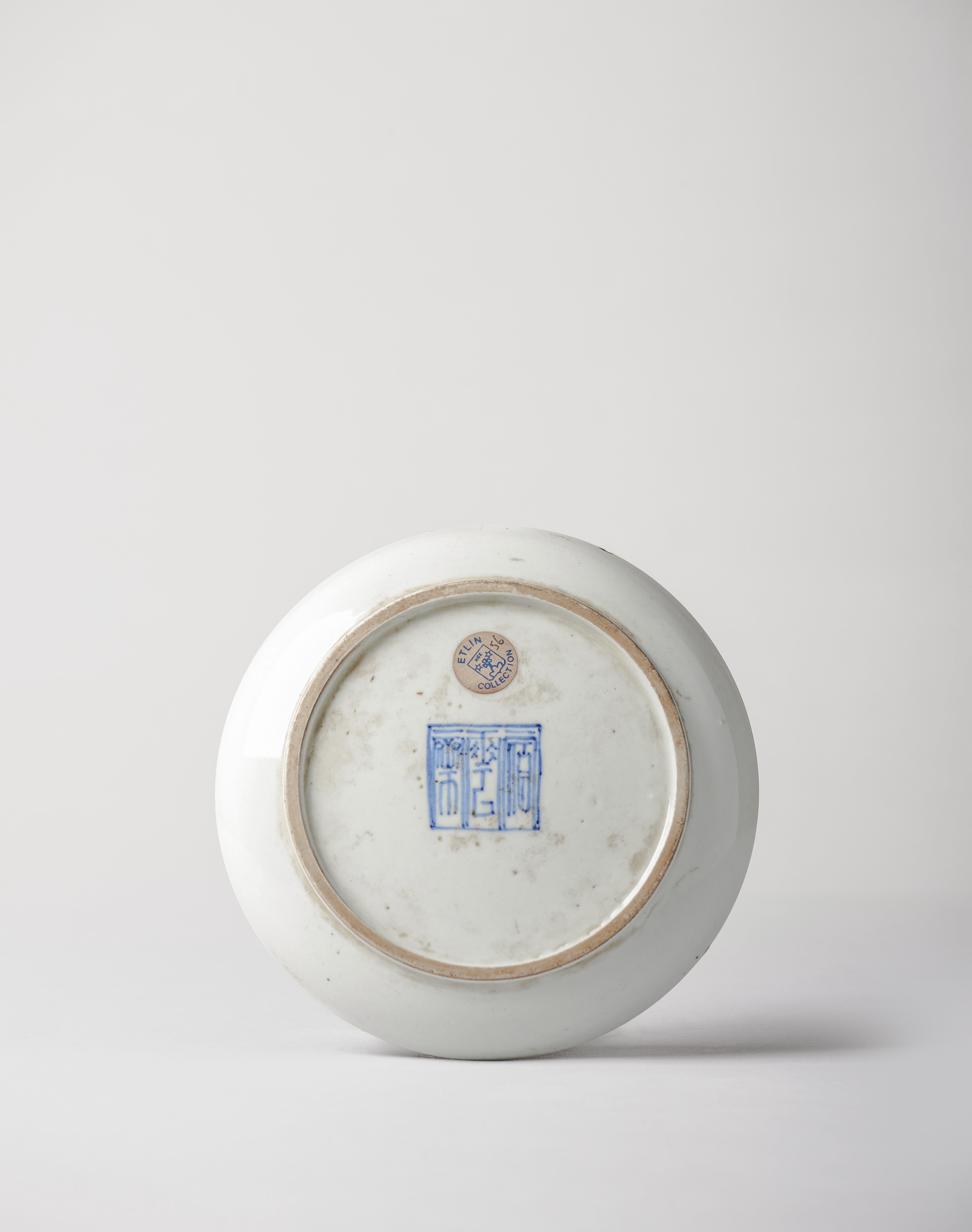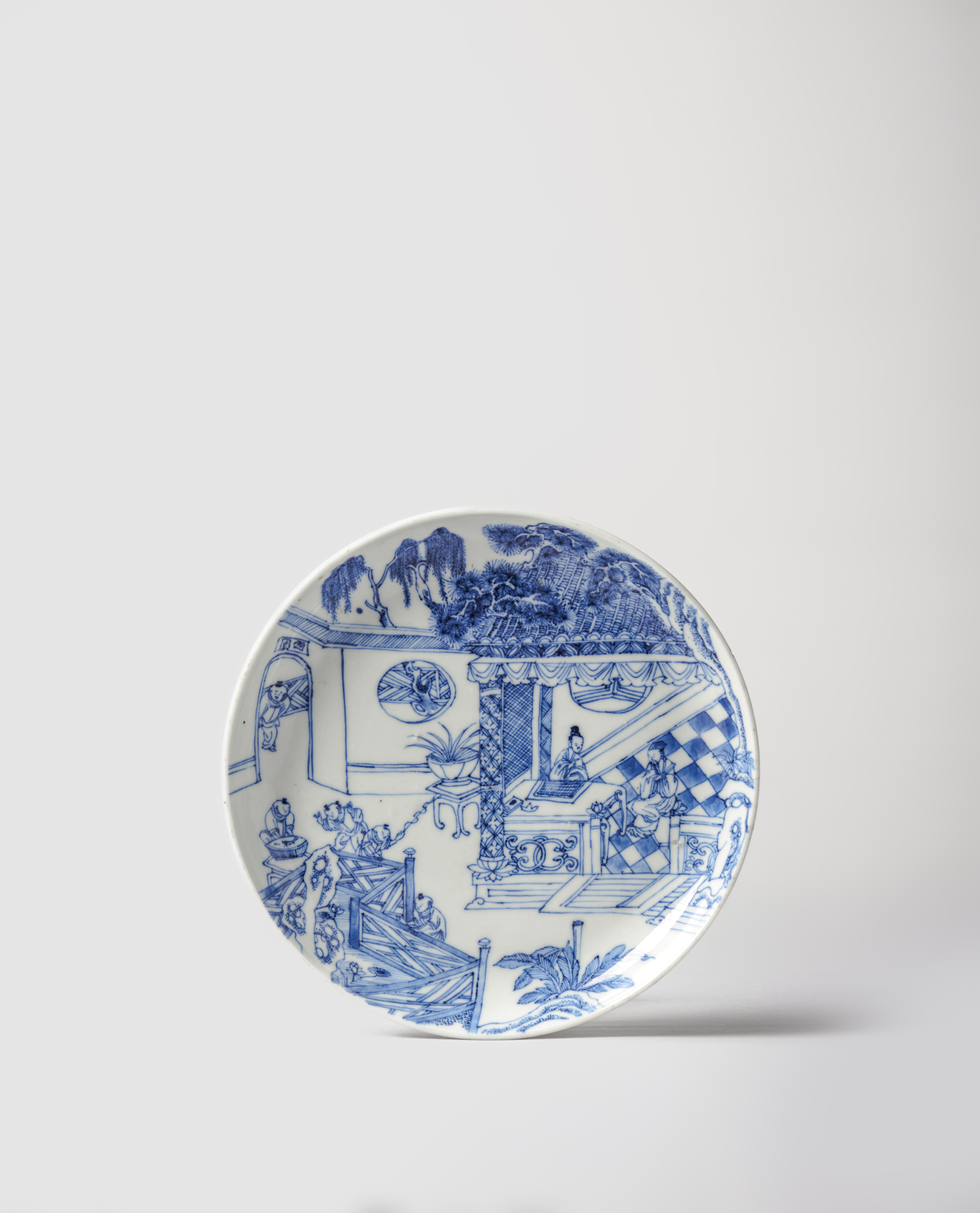 A very fine and rare blue and white pencilled style dish 康熙时期精美青花盘,苏云斋款