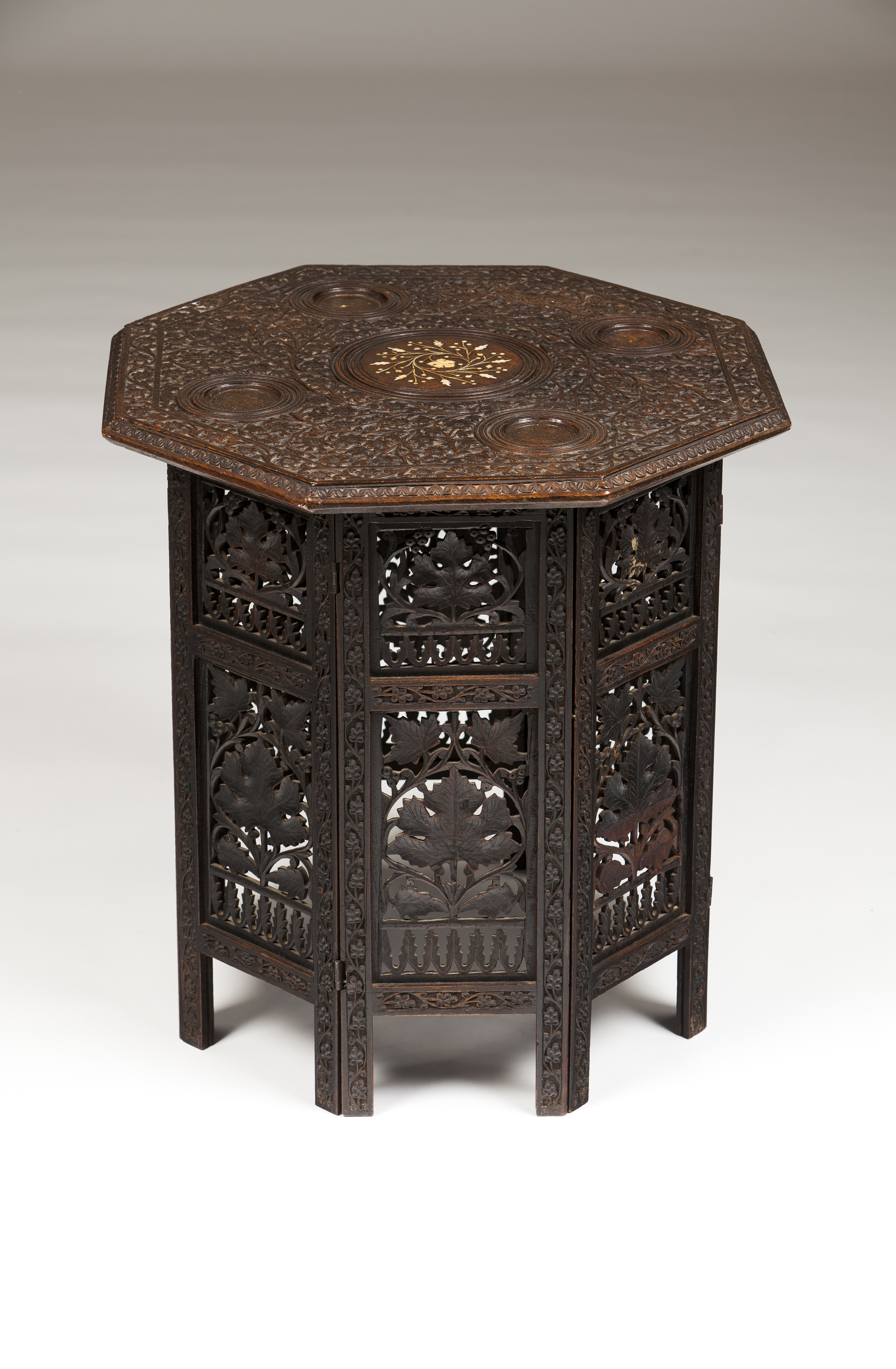 Octagonal top of central cartouche with inlaid ivory floral decorative motifs